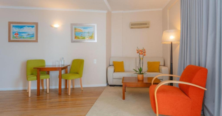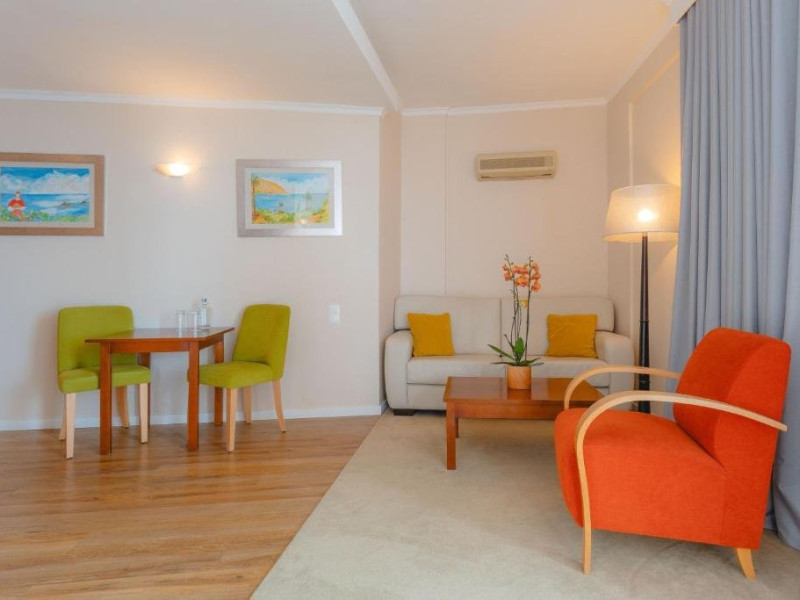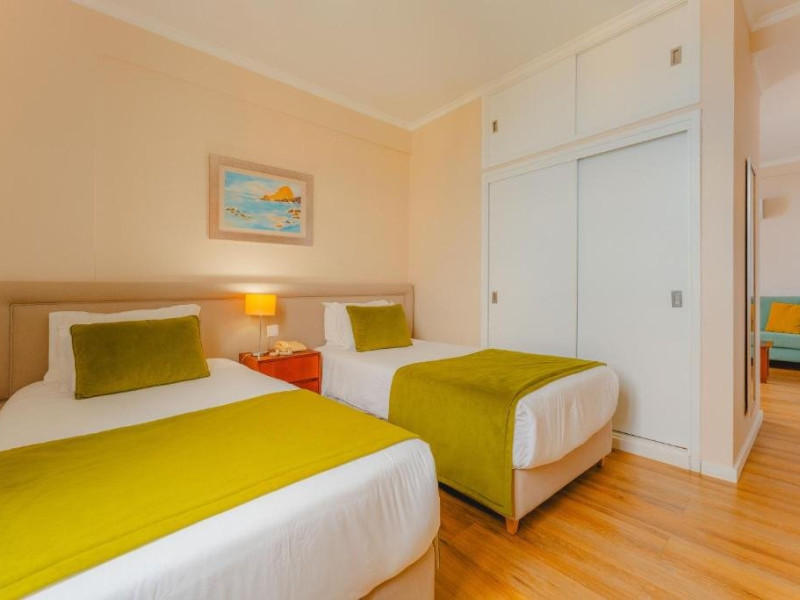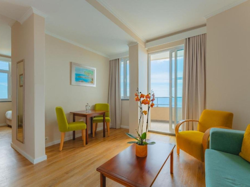 Descriere: Hotel Duas Torres este un hotel modern si confortabil, situat la cativa pasi de malul marii si la doar 3,5 km de centrul orasului Funchal. Proprietatea ofera studiouri si suite spatioase, majoritatea cu vedere la Oceanul Atlantic, ideale pentru familii, cupluri sau calatorii individuali. Facilitatile variate, atmosfera relaxanta si apropierea de promenada fac din acest hotel o alegere excelenta pentru un sejur complet in Madeira. Localizare: Hotelul se afla pe Estrada Monumental, aproape de promenada de pe malul marii si la doar cateva minute cu masina de centrul Funchal. In apropiere se gasesc restaurante, cafenele, magazine si puncte de atractie turistica. Aeroportul International Cristiano Ronaldo Madeira este situat la aproximativ 20 km. Dotari camera: Studiourile si suitele sunt dotate cu aer conditionat, Wi-Fi gratuit, TV cu ecran plat si balcon mobilat, majoritatea cu vedere la mare sau la munte. Fiecare unitate are chicineta complet utilata, baie privata cu dus sau cada, uscator de par si articole de toaleta. Studiourile si suitele sunt concepute pentru maximum 3 persoane si ofera izolare fonica pentru un sejur odihnitor. Facilitati hotel: Hotelul ofera Wi-Fi gratuit, parcare privata gratuita, piscina exterioara, terasa, gradina, teren de tenis si biblioteca. Oaspetii pot beneficia de room service, receptie 24h, servicii de spalatorie, fax si copiere documente, seif si lift. Restaurantul a la carte O Classico serveste preparate portugheze si internationale, iar hotelul dispune si de snack bar si bar pentru momente de relaxare. Promenada de la malul marii se afla la doar 250 m, ideala pentru plimbari sau jogging. Site web: https://duastorres.pt/ Nota informativa: Pentru anumite facilitati din hotel sau din camera, hotelierul poate solicita taxe suplimentare. In momentul sosirii la hotel solicitati receptionerului sa va informeze cu exactitate asupra lor. Taxa turistica obligatorie se plateste la receptie.