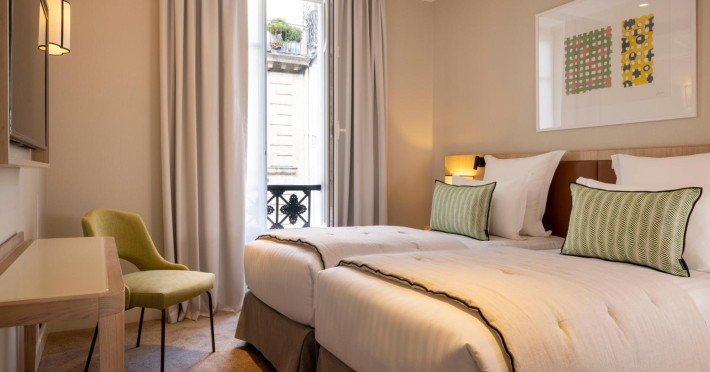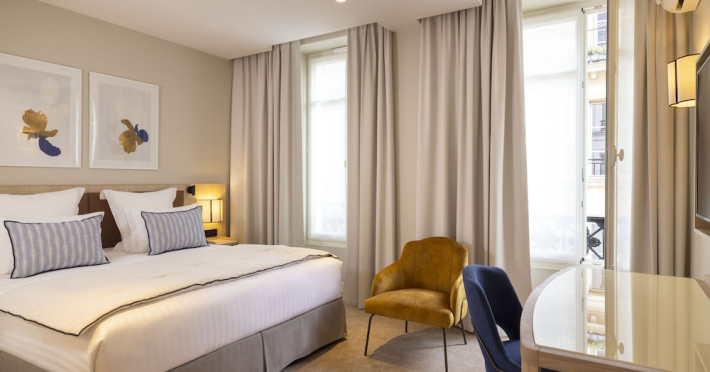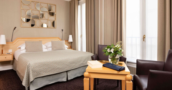 Located in the center of Paris, near the Tuileries Garden and Place de la Concorde, Hotel Duminy Vendome offers a terrace with views. The hotel features 76 air-conditioned guest rooms equipped with minibars, espresso makers, flat-screen TVs with satellite programming, complimentary Wi-Fi, private bathrooms with complimentary toiletries and hair dryers, phones, safes, and desks. Guests can enjoy a bar/lounge, a snack bar/deli, and a buffet breakfast available daily (6:30 AM to 10:00 AM) for a fee. Additional amenities and services include 24-hour room service, complimentary Wi-Fi, concierge services, a 24-hour front desk, multilingual staff, dry cleaning/laundry services, daily housekeeping, luggage storage, ticket/tour assistance, airport transfer (available), parking facilities, and a business center. The Duminy Vendome is a Tourist hotel. The nightlife/restaurants are right next to the hotel.