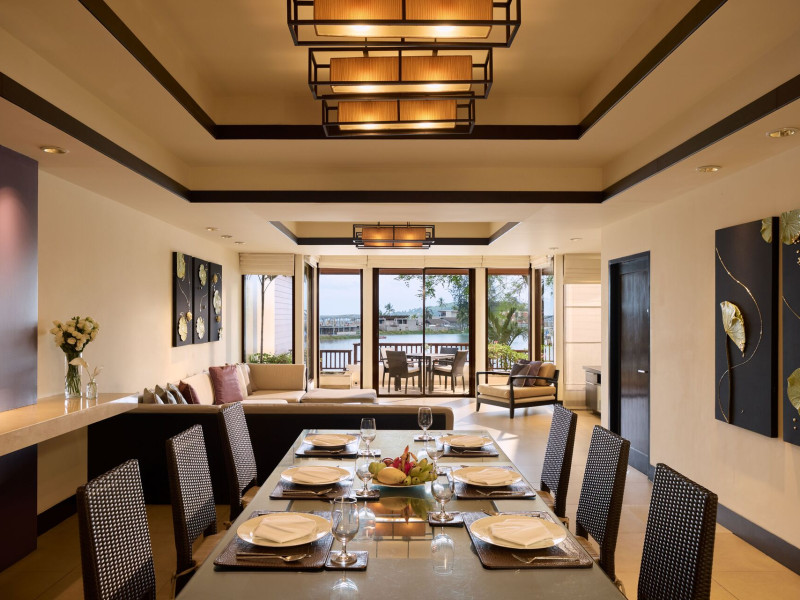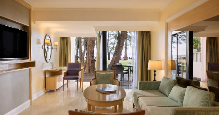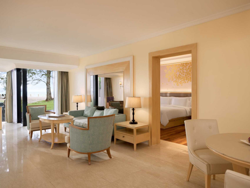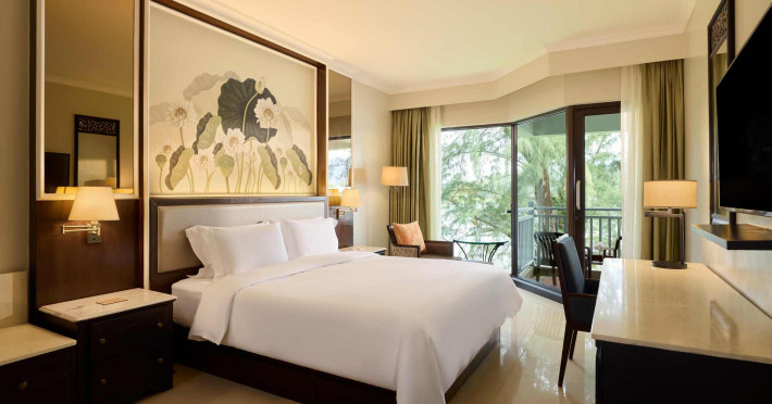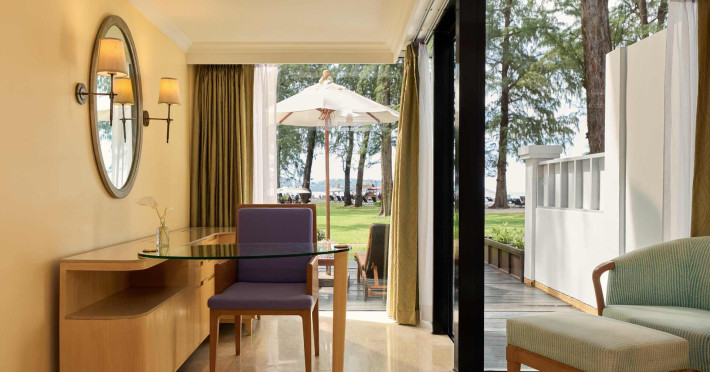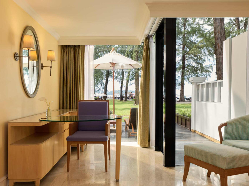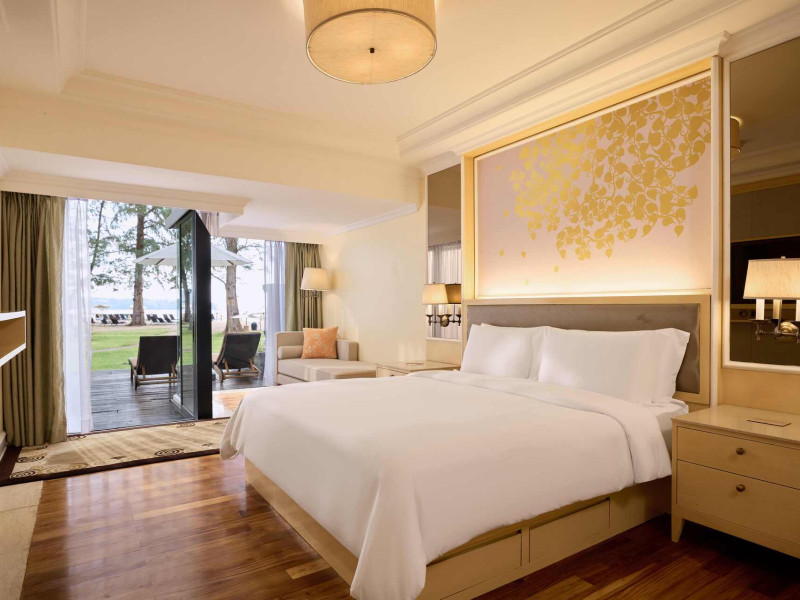 The hotel Dusit Thani Laguna Phuket is located next to a public sandy beach and about 100 m from the sea. The nearest restaurants and bars can be found within 100 m. The holiday centre is only around 100 m away. There is a shuttle between the hotel and the airport (for a fee). The beach is Pets are allowed here. Here, there are sun loungers, cushions, sun umbrellas and beach towels available. The GPS-verified hotel is equipped with a 24h reception, a lobby, Wi-Fi, internet access, a lift, cash machine, a jacuzzi, parking spaces as well as a TV lounge with satellite TV. In the outdoor area you will find a garden as well as a supervised pool (open all year), where sun loungers, sun umbrellas and pool towels are available for free. There is also an integrated children's pool with a water slide (type open slide). Furthermore, you can relax outdoors on a terrace. You can store your valuables in the safe, and your luggage in the hotel`s storage room. For the young hotel guests there is a playground. For very young guests, kid`s chairs and highchairs can also be provided. There is also a laundry service available at an additional cost to customers as well as an ironing service. Ironing equipment can also be rented at the hotel for a fee. For your comfort, in addition to the concierge service the hotel page will ensure you are looked after. Guests at the accommodation can get a wake-up call from the hotel personnel. The energy supply is 220 Volts. For conventions and other business meetings, the hotel offers EXTRA_FEE conference rooms with a reception, tables, printer, scanner, internet access as well as a catering service. For guests on their honeymoon, the hotel has special offers such as a romantically-decorated room or special honeymoon packages. In your hotel, a lot of focus is placed on sustainability. This includes the provision of soap and shampoo dispensers and organic food. The hotel requires that all guests pay a deposit upon arrival. American Express, Euro/Master Card and Visa are accepted as means of payment. Due to its barrier-free facilities , such as barrier-free entrances, wheelchair accessible rooms, a wheelchair accessible lift and wheelchair-accessible bathrooms, the hotel is also suitable for wheelchair users. Catering Breakfast is offered American, continental, from the buffet or à la carte. Enjoy your lunch as a set meal. Dinner is also served as a set meal or à la carte. When booking all-inclusive, one meal in the à la carte restaurant is included. For the meals, there are a buffet restaurant with terrace (Italian dishes) and the cafeteria. The drinks menu of the hotel includes water, soft drinks, coffee and tea, beer and wine. During your stay you can take part in the cooking classes offered by the hotel (extra fee). Distances