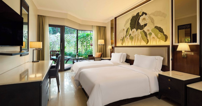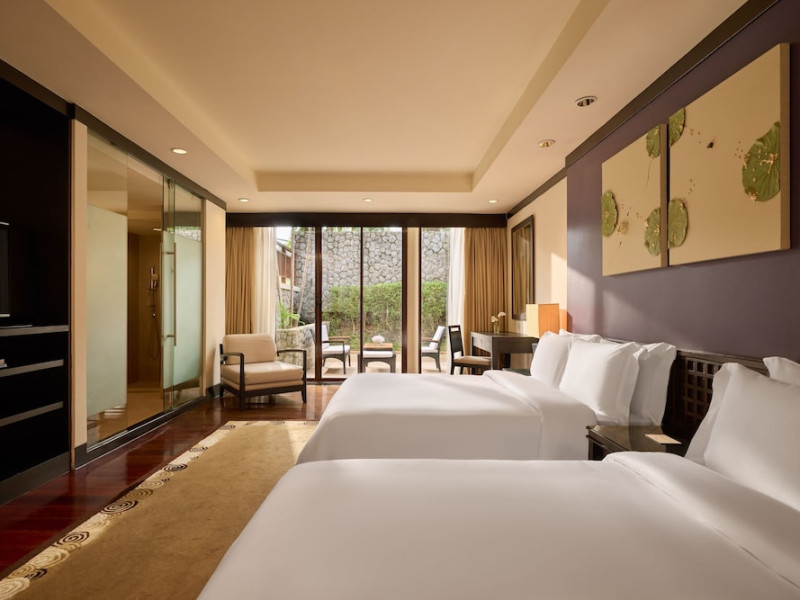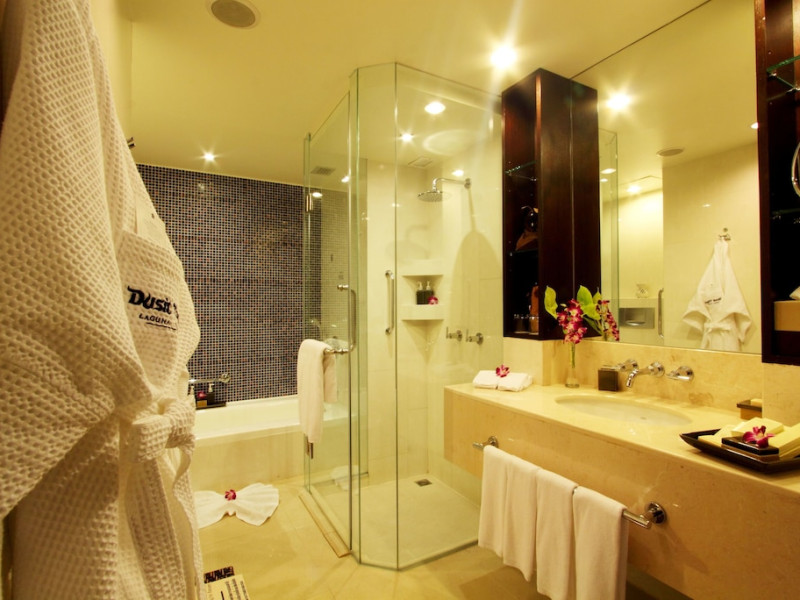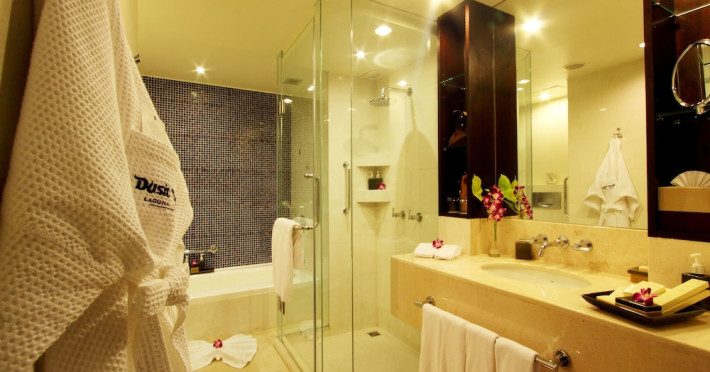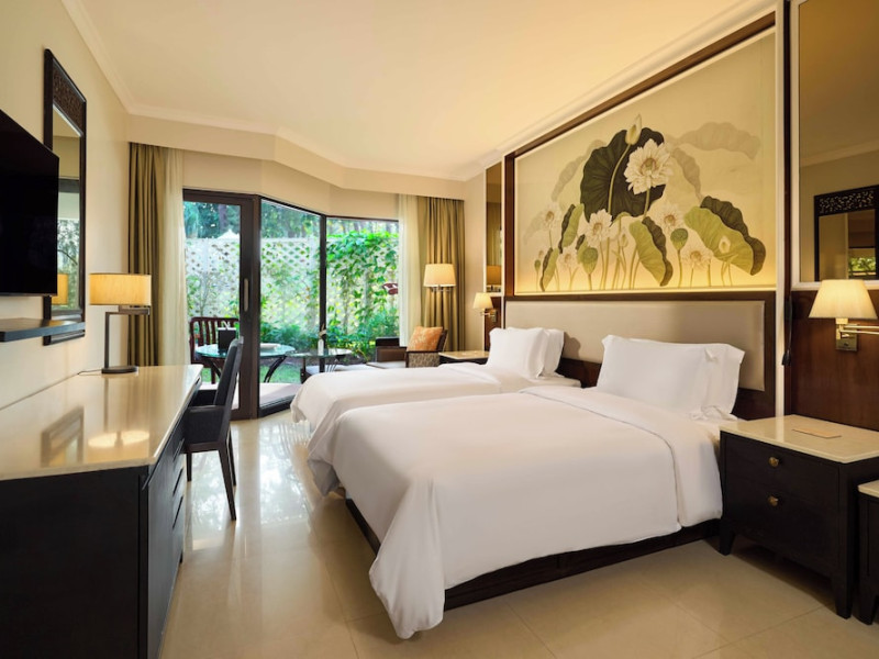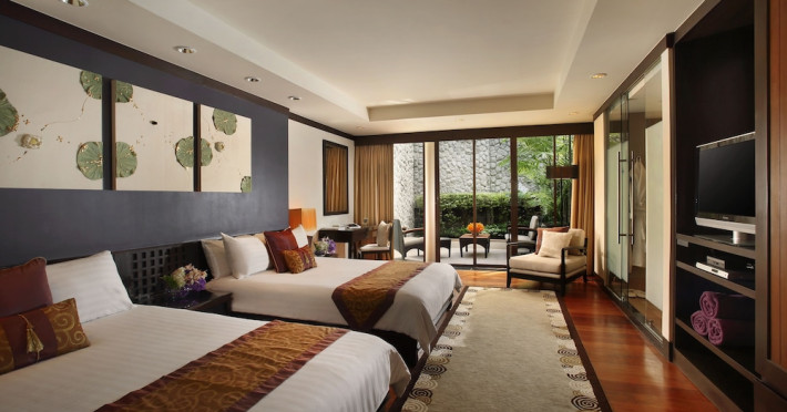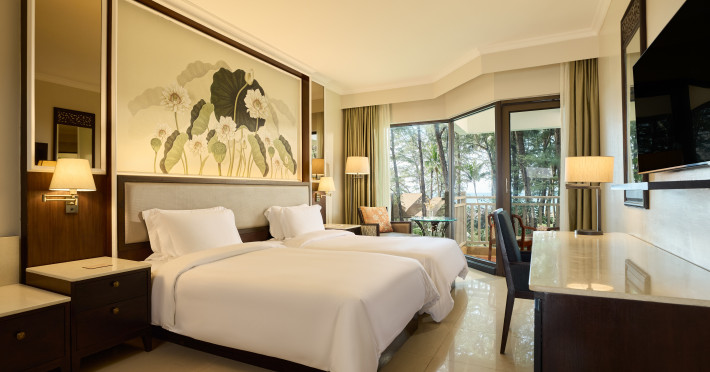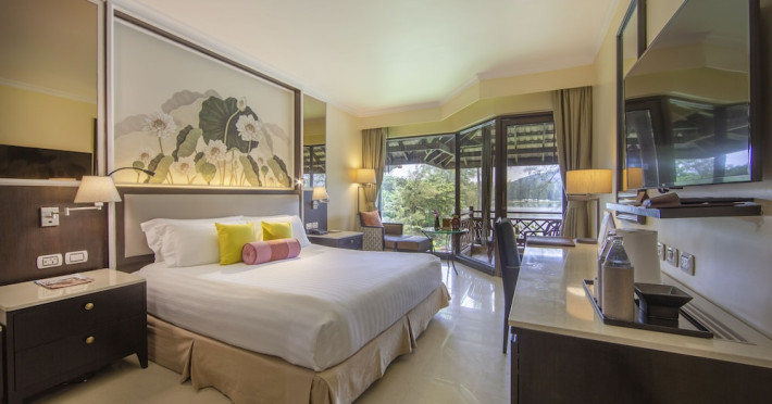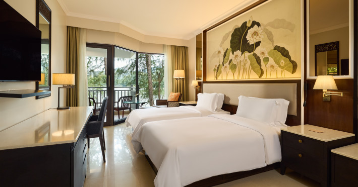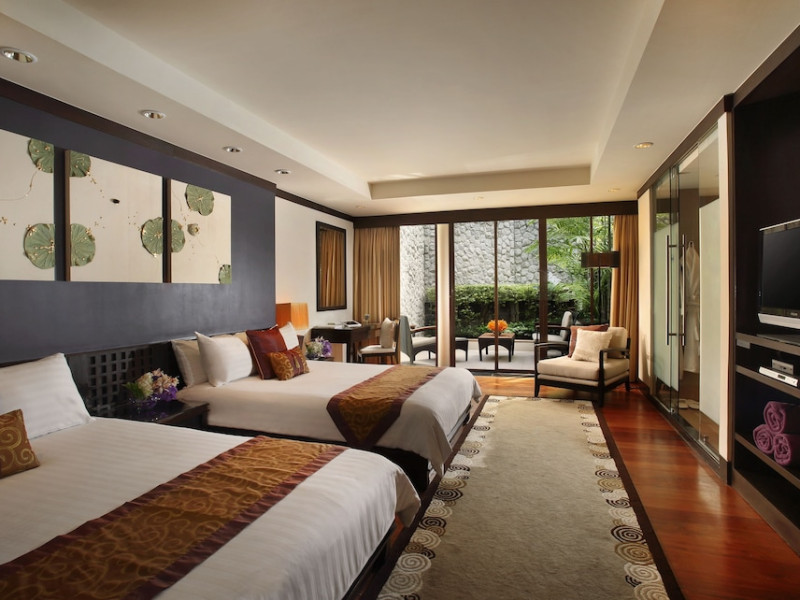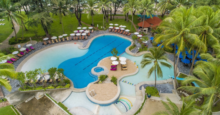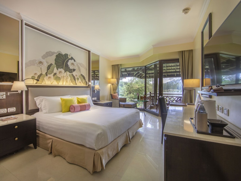 Dusit Thani Laguna Phuket, a luxury resort nestled within Laguna Phuket's integrated resort development on Phuket's west coast, offers an idyllic beachfront retreat on Bang Tao Bay. A 30-minute drive from Phuket International Airport, it's equidistant from Patong Beach and Phuket City. The resort features neocolonial architecture with traditional Thai motifs, and bright, airy rooms with native woods, tiles, ceramics, antique carvings, and textiles. Guest rooms include refrigerators, minibars, private balconies, and 55-inch LCD televisions with digital programming. Private bathrooms offer separate bathtubs and showers with rainfall showerheads and complimentary toiletries. Amenities include complimentary Wi-Fi, a 24-hour business center, complimentary newspapers in the lobby, dry cleaning/laundry services, concierge services, an arcade/game room, an outdoor pool, an outdoor tennis court, a health club, and a spa offering massages and body treatments. Dining options include three restaurants, room service (limited hours), and a coffee shop/cafe. A daily complimentary reception and bar/lounge are also available. Buffet breakfasts are available daily (fee applies). The resort also offers childcare and access to the championship 18-hole Laguna Phuket Golf Course. Event space includes a conference center and two meeting rooms (100 square meters). A roundtrip airport shuttle is available for a surcharge. Free self-parking is available onsite. Nearby attractions include Boat Avenue Mall Phuket (1.5 km), Laguna Phuket Golf Club (1.7 km), and Bang Tao Beach (1.9 km). Kamala Beach is 8.4 km away, and Patong Beach is 16.4 km away. The Dusit Thani Laguna Phuket is a Beach Resort, Child Friendly, Family Style, Full Service, Golf Resort, Honeymoon, Leisure, Resort, Tourist, Villa Resort hotel. The nightlife/restaurants are easily accessible by taxi or bus from the hotel.