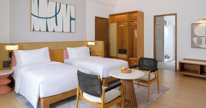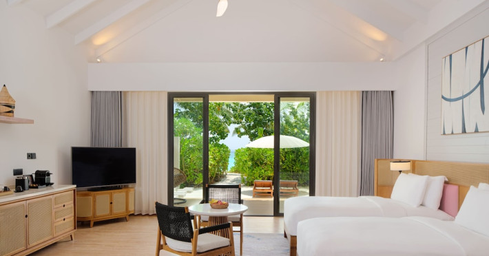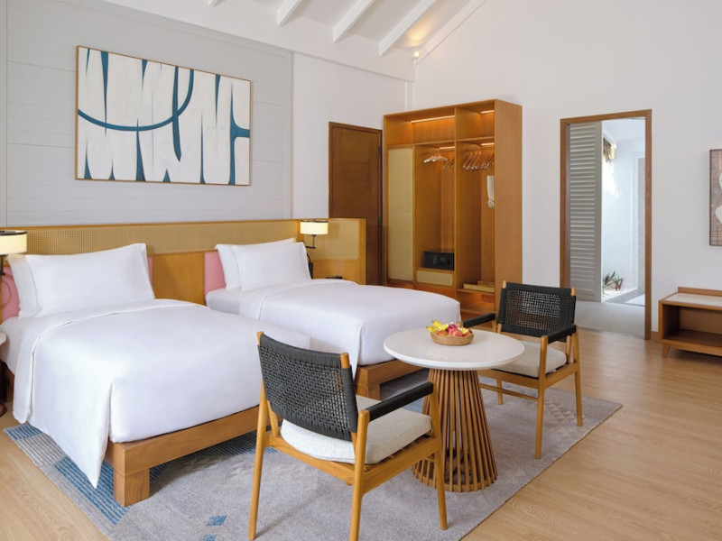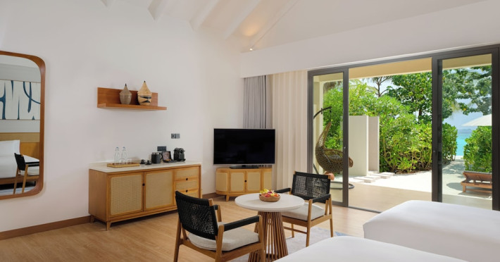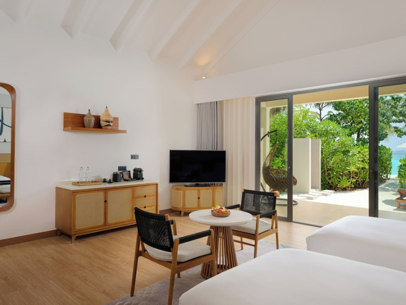 Located a short speedboat ride from Malé, dusitD2 Feydhoo Maldives offers an all-inclusive escape with 127 villas, suites, and residences. This beachfront resort features a private beach area, outdoor pool, fitness center, and award-winning Namm Spa with massages and body treatments. Guests can savor diverse cuisines at multiple restaurants and bars, including a coffee shop/cafe, and enjoy a complimentary buffet breakfast. The resort offers complimentary wireless internet access, concierge services, a kids' club, and a nightclub. Recreational activities include snorkeling and tennis. The 24-hour front desk provides services in multiple languages, including Arabic, English, French, and Hindi. A complimentary roundtrip airport shuttle is available 24 hours. Individually decorated guestrooms feature air conditioning, a seating area, a flat-screen TV with satellite channels, a safety deposit box, and a private bathroom with designer toiletries. The dusitD2 Feydhoo Maldives is a hotel.
