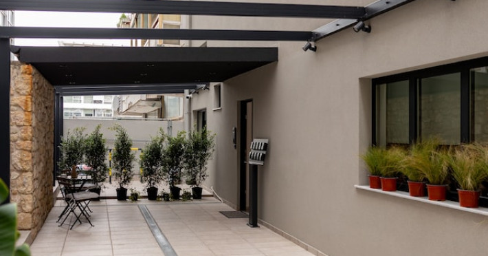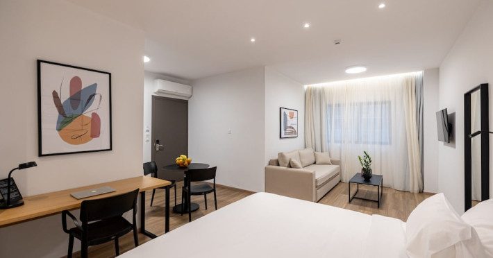 Near Parthenon. With a stay at Earos Urban Living, youll be centrally located in Nea Smirni, within a 5-minute drive of Syntagma Square and Temple of Olympian Zeus. This guesthouse is 3.2 mi (5.2 km) from Acropolis and 3.2 mi (5.2 km) from Parthenon. Make yourself at home in one of the 12 individually decorated guestrooms, featuring kitchenettes with stovetops and microwaves. 43-inch flat-screen televisions with digital programming provide entertainment, while complimentary wireless internet access keeps you connected. Conveniences include phones, as well as safes and electric kettles. Make use of convenient amenities such as complimentary wireless internet access, a fireplace in the lobby, and tour/ticket assistance.