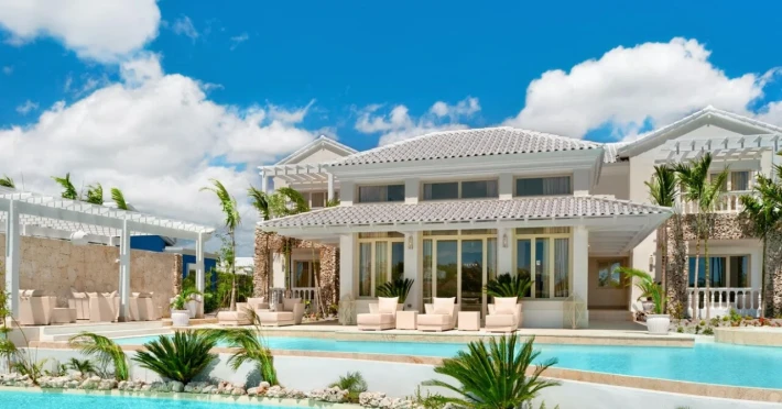Eden Roc Cap Cana in the Dominican Republic is a luxury resort part of Relais & Châteaux. It offers 62 guest room suites and villas, including Boutique Suites with private pools, Beachfront Suites for direct beach access, and Oceanfront Pool Villas for ultimate privacy. All rooms are spacious with large balconies or verandas, soaking tubs, and luxurious amenities. The resort features the world's first Natura Bissé hotel spa and Mediterranean-inspired restaurants. It's a great choice for families, couples, solo travelers, and those seeking exceptional culinary experiences.