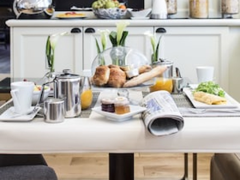 Dining Satisfy your appetite for lunch or dinner at La Cuisine de l’E7, a restaurant which specializes in French cuisine, or stay in and take advantage of the 24-hour room service. Wrap up your day with a drink at the bar/lounge. Buffet breakfasts are served on weekdays from 7:00 AM to 10:00 AM and on weekends from 7:00 AM to 11:00 AM for a fee.