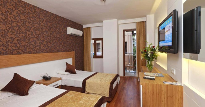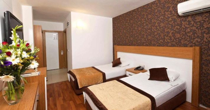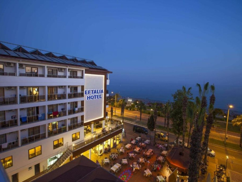 Descriere: Inaugurat in 1986 si complet renovat in iarna lui 2012, Eftalia Downtown Hotel (ex- Eftalia Aytur) ofera servicii de trei stele in regim all inclusive sau demipensiune si pune la dispozitia oaspetilor facilitati precum doua piscine exterioare, acces imediat la plaja, sezlonguri si umbrele contra cost, un centru SPA si o sala de conferinte cu o capacitate de 40 de persoane.