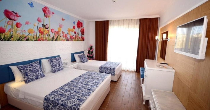 Descriere: Hotelul face parte din grupul Eftalia Hotels, a fost deschis in anul 2006 si renovat in perioada 2015 2016. Este construit pe o suprafata de 37700 mp si are 473 de camere repartizate in 12 cladiri a cate 3 etaje.