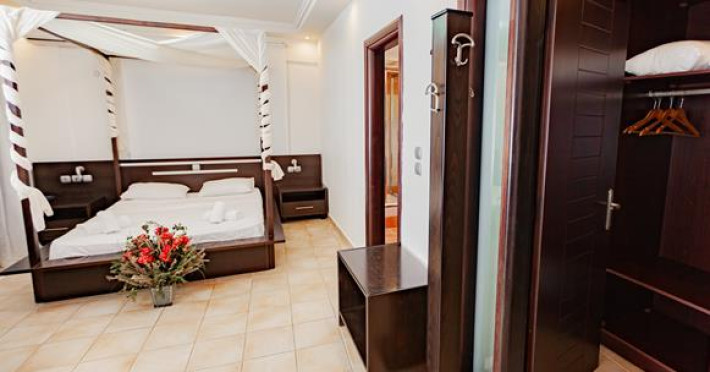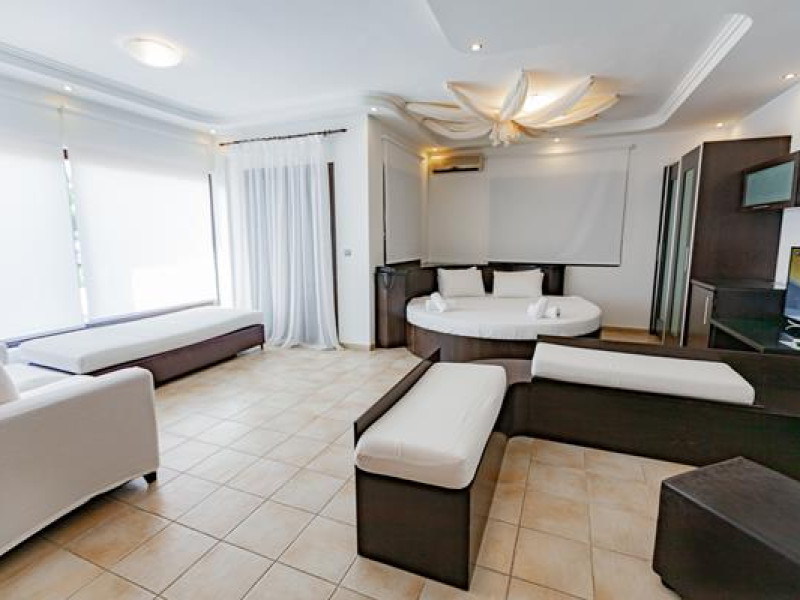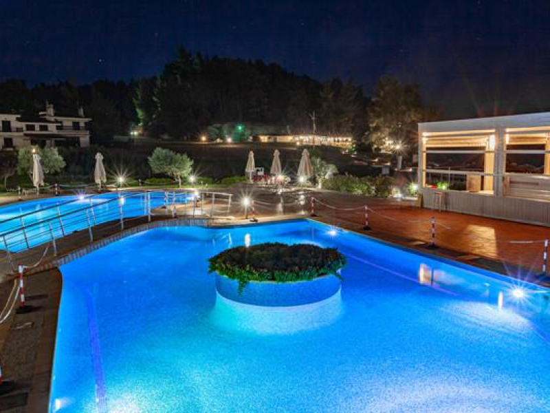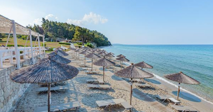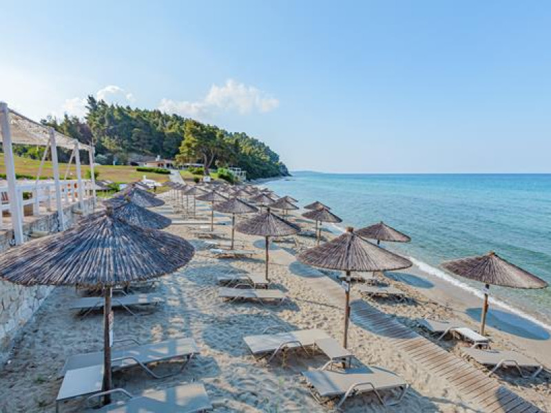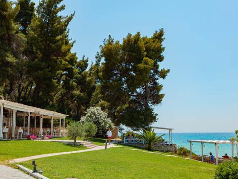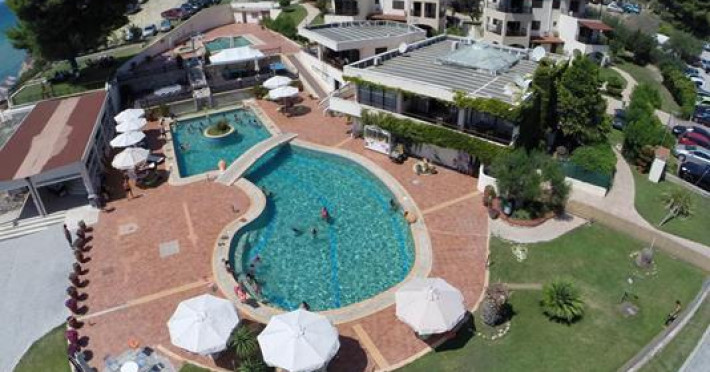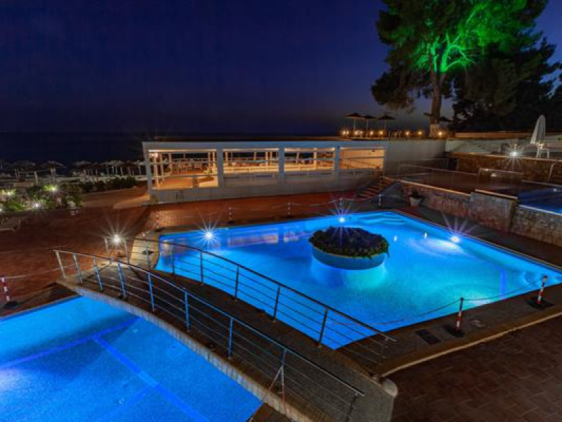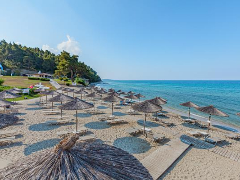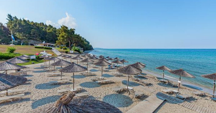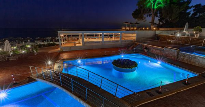 Boasting a private beach, this resort provides premium 4-star accommodation. Only a short walk from the coast, this resort is perfectly situated for those searching for a beach-side retreat. Three outdoors pools (a children pool) and an indoors heated one offer freshness, relaxation and safety (lifeguards presence) whilst the wonderful sandy beach and most clean sea invite you for a plunge into the sea. The hotel offers also mini-market, internet corner, free wi-fi internet services, restaurant, beach bar, tavern and also tennis and basketball courts. Meals can be of different choices, depending on the guests number (might be buffet or a-la-carte or set menu). The sunbeds on the beach are free of charge for the clients of the hotel.