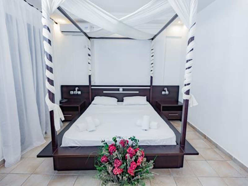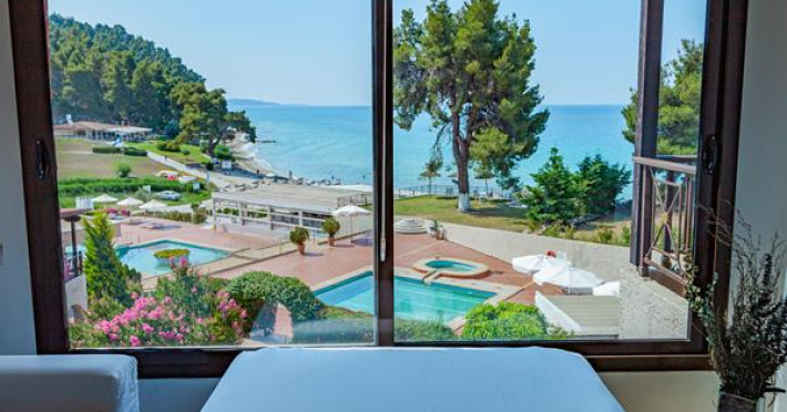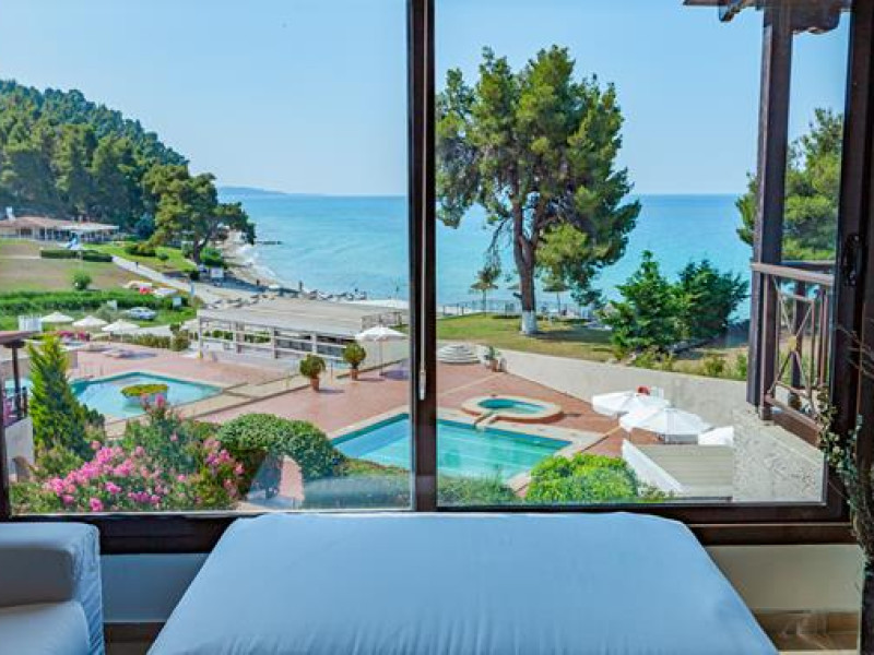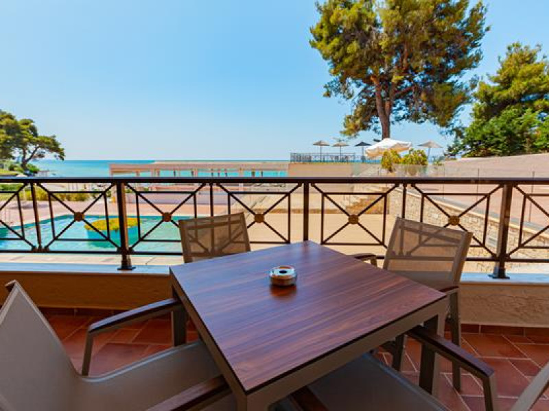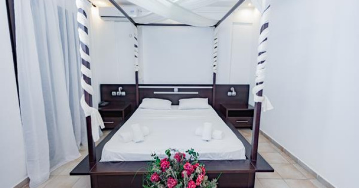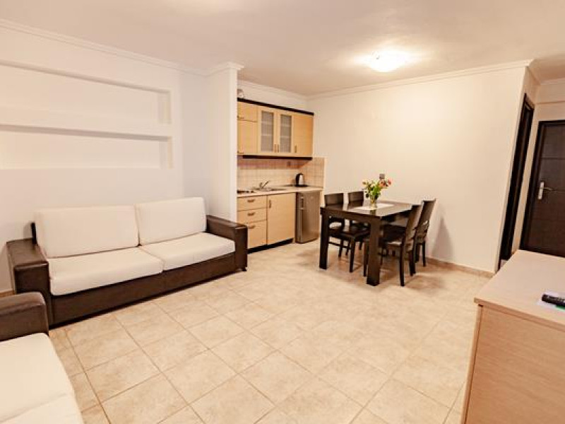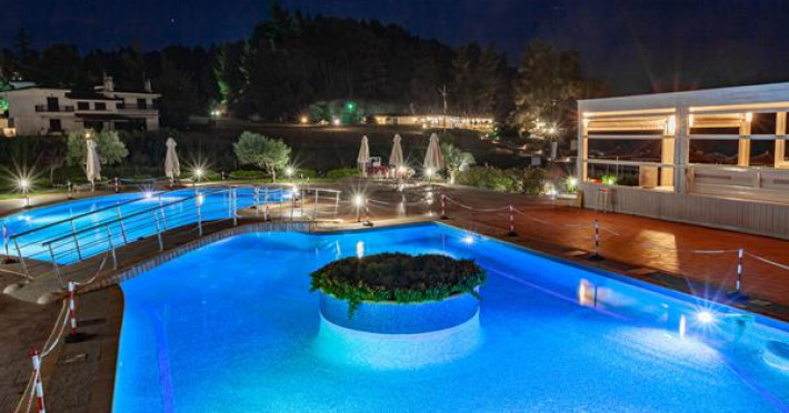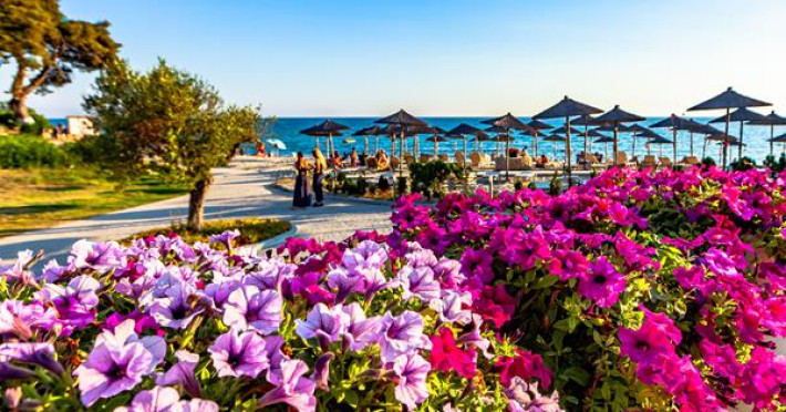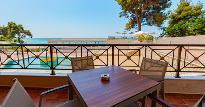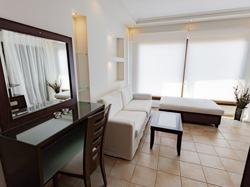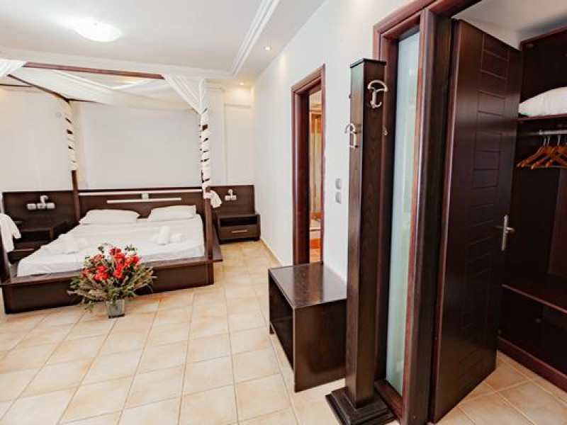 Boasting a private beach, this resort provides premium 4-star accommodation. Only a short walk from the coast, this resort is perfectly situated for those searching for a beach-side retreat. Three outdoors pools (a children pool) and an indoors heated one offer freshness, relaxation and safety (lifeguards presence) whilst the wonderful sandy beach and most clean sea invite you for a plunge into the sea. The hotel offers also mini-market, internet corner, free wi-fi internet services, restaurant, beach bar, tavern and also tennis and basketball courts. Meals can be of different choices, depending on the guests number (might be buffet or a-la-carte or set menu). The sunbeds on the beach are free of charge for the clients of the hotel.