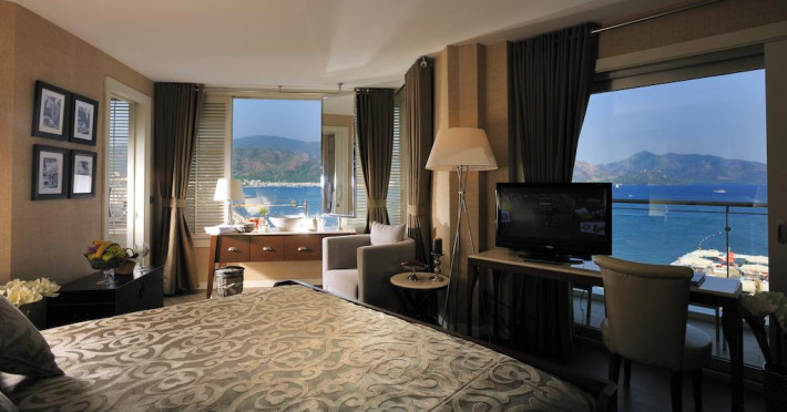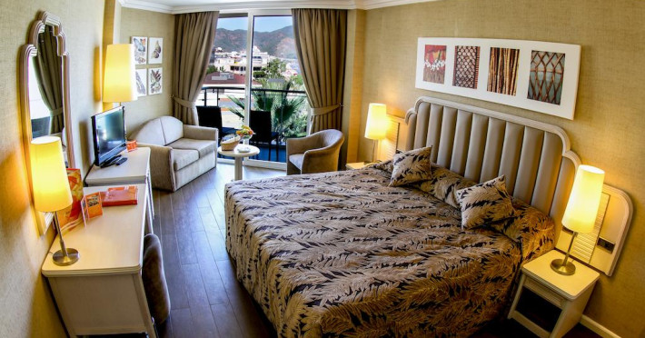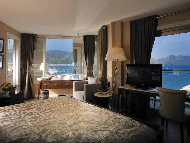 Camerele de la Elegance Hotels International Marmaris sunt decorate cu căldură, în culori pastelate. Fiecare include o zonă de relaxare cu canapea, un balcon și TV prin satelit. Proprietatea mai oferă acces la Wi-Fi și room service nonstop.