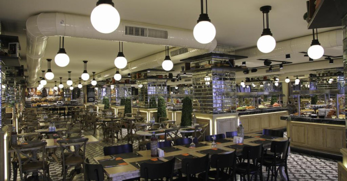 Oaspeții pot lua masa la restaurantul romantic, care oferă muzică live. Cina poate fi servită şi pe malul apei, pe o punte plutitoare. La cafenea puteţi savura produse de patiserie proaspete în timpul zilei.