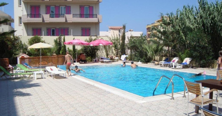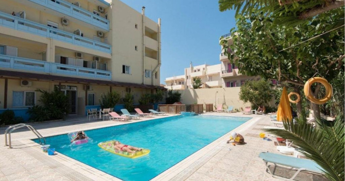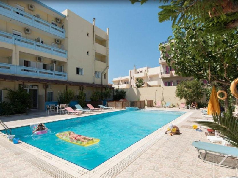 Descriere: Eleni Palace este un aparthotel administrat in familie, situat la cateva minute de mers pe jos de plaja din Amoudara. Unitatea ofera studiouri si apartamente simple, confortabile si bine echipate, ideale pentru un sejur relaxant in apropierea orasului Heraklion. Atmosfera prietenoasa, cele doua piscine exterioare, terasa insorita si zonele comune contribuie la o vacanta placuta si comoda pentru cupluri si familii. Localizare: Hotelul se afla in statiunea Amoudara, la aproximativ 150 de metri de plaja si la 68 kilometri de principalele obiective turistice din Heraklion, precum Zidurile venetiene, Muzeul de Istorie a Cretei si Muzeul de Arheologie. Aeroportul International Heraklion se gaseste la aproximativ 910 kilometri. Zona ofera acces rapid la restaurante, cafenele si magazine, fiind ideala pentru un sejur linistit, aproape de facilitatile orasului. Dotari camera: Camerele si apartamentele sunt spatioase si includ aer conditionat, Wi-Fi gratuit, TV cu ecran plat, balcon, chicineta sau bucatarie complet utilata (in anumite unitati), frigider, ustensile de bucatarie, dulap pentru haine, precum si baie privata cu dus si articole de toaleta gratuite. Unele unitati ofera zona de living sau canapea extensibila, fiind potrivite pentru familii. Facilitati hotel: Proprietatea ofera doua piscine exterioare (una pentru copii), sezlonguri, umbrele, bar la piscina, snack bar, zona de gratar, terasa la soare si gradina. Oaspetii beneficiaza de Wi-Fi rapid gratuit, parcare privata gratuita, lift, salon de zi comun, servicii de inchiriere auto si facilitati pentru persoane cu mobilitate redusa. Micul dejun este disponibil zilnic, tip bufet sau continental. Camerele sunt pentru nefumatori, iar hotelul pune la dispozitie unitati ideale pentru cupluri si familii. Nota informativa: Pentru anumite facilitati din hotel sau din camera, hotelierul poate solicita taxe suplimentare. In momentul sosirii la hotel solicitati receptionerului sa va informeze cu exactitate asupra lor. Taxa turistica obligatorie - se plateste la receptie.