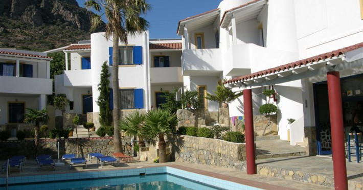 The family-run hotel was opened in 1987 and it consists of three buildings with 14 units.The hotel offers reception (08:00 - 22:00), court yard with its terrace and barbecue facilities, Wi Fi Internet, fresh water pool with pool bar, sun beds and umbrellas, long stretched beach, sun beds and umbrellas on the beach (extra charge). All apartments have traditionally furnished living room with 2 beds and kitchenette and one bedroom, air conditioning (extra charge), fan, Wi Fi Internet, small bathroom with bathtub or shower, WC and balcony or terrace. **Important: Please advise arrival time, if arrival outside the reception working hours!**Address: 72200 Koutsounari, Crete, Greece.