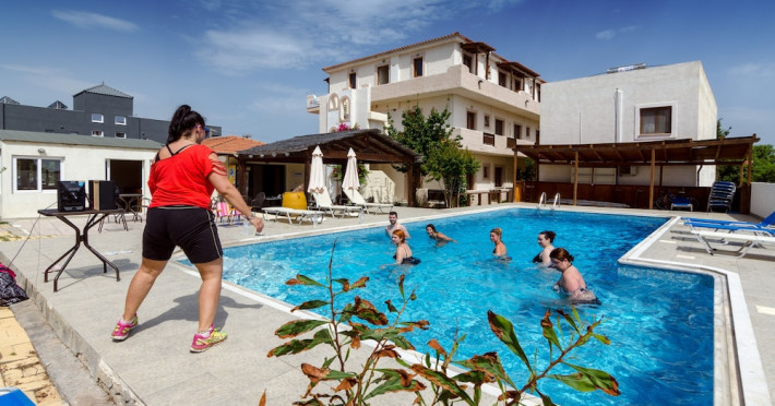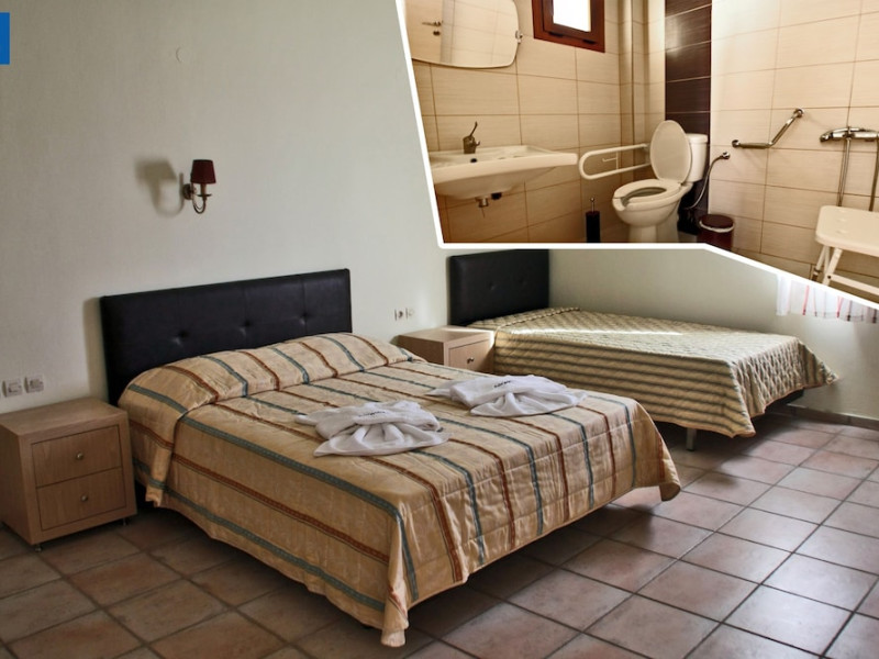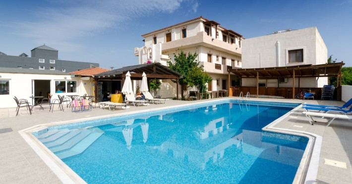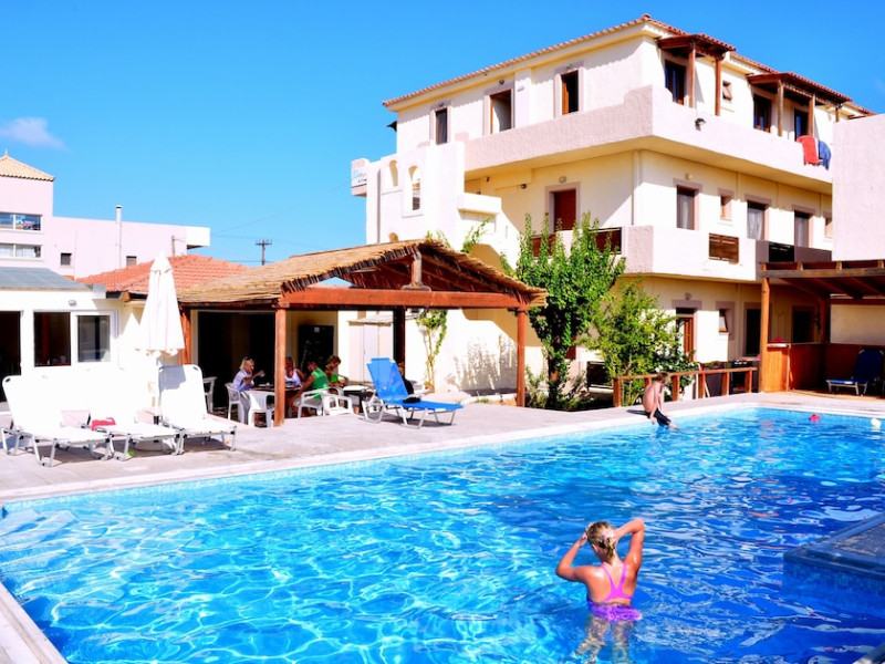 The hotel Facilities and services include Parking, Private check-in/check-out, Express check-in/check-out, Luggage storage, Tour desk, Currency exchange, Wi-Fi connection, Air conditioning (extra charge), Safe (extra charge), Garden, terrace, shared lounge/TV, Restaurant, Bar, Breakfast buffet, Kid meals (surcharge), Breakfast in the room, snack bar, airport shuttle/pick-up/drop off (surcharge), car hire, pool bar, Outdoor pool, sun loungers/beach chair, massage facilities (surcharge) facilities for disabled guests and Wheelchair accessible.The rooms are equipped with balcony/terrace, air conditioning (surcharge), safe box (surcharge), TV, mini fridge, Coffee/tea maker, non-smoking rooms, bathroom with free toiletries and hairdryer.Note: Cards accepted: VISA, MastercardAddress: Delfon and Ithakis, hersonissos, Anissaras Crete, 70014, Greece