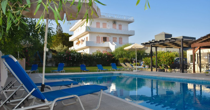 Descriere: Eleonora Hotel este un hotel administrat in familie, situat intr-o zona linistita din Anissaras, la aproximativ 5 minute de plaja. Unitatea dispune de 16 camere decorate in stil clasic, fiecare reprezentand cate o regiune a Cretei, pentru ca oaspetii sa descopere traditiile locale. Hotelul ofera o atmosfera calda si prietenoasa, bazata pe relatia directa dintre gazde si oaspeti, astfel incat acestia sa se simta ca intr-o casa cretana. Piscina exterioara, terasa cu sezlonguri si preparatele traditionale contribuie la un sejur relaxant si confortabil. Localizare: ELEONORA ANISSARAS HOTEL se afla in zona linistita Anissaras, la cateva minute de mers de plaja si la aproximativ 5 minute cu masina de centrul animat al statiunii Hersonissos. Zona ofera acces rapid la restaurante, magazine, baruri si diverse facilitati locale, fiind ideala pentru o vacanta relaxanta, dar aproape de punctele de interes ale statiunii. Dotari camere: Camerele sunt amenajate in stil clasic, oferind aer conditionat, Wi-Fi, frigider, TV, balcon sau terasa, precum si baie privata cu dus, uscator de par si articole de toaleta. Fiecare camera are tematica inspirata de diferite zone ale Cretei, oferind oaspetilor ocazia de a descoperi povestea fiecarei regiuni. Unitatile sunt potrivite atat pentru cupluri, cat si pentru familii, asigurand confortul necesar pentru un sejur placut. Facilitati hotel: Hotelul dispune de o piscina exterioara cu sezlonguri, un pool bar, un restaurant ca la carte cu preparate grecesti si internationale, precum si optiuni pentru mic dejun, inclusiv produse facute in casa. Sunt disponibile servicii precum room-service, lounge/zona TV comuna, inchirieri auto, transfer de la/spre aeroport (contra cost), spatiu pentru depozitarea bagajelor, check-in/check-out privat, schimb valutar si servicii de masaj contra cost. Proprietatea ofera camere pentru familii, facilitati pentru persoane cu dizabilitati si servicii pentru copii (meniuri, la cerere). Animalele de companie nu sunt acceptate. Site web: https://www.eleonoraanissaras.com/ Nota informativa: Pentru anumite facilitati din hotel sau din camera, hotelierul poate solicita taxe suplimentare. In momentul sosirii la hotel solicitati receptionerului sa va informeze cu exactitate asupra lor. Taxa turistica obligatorie - se plateste la receptie.