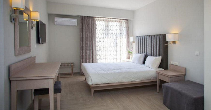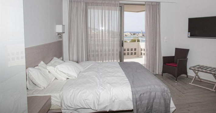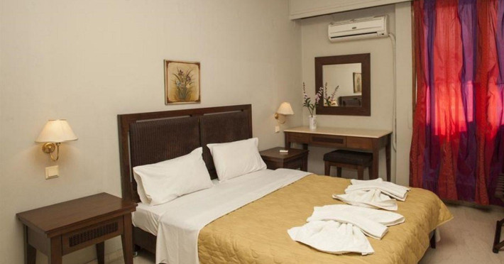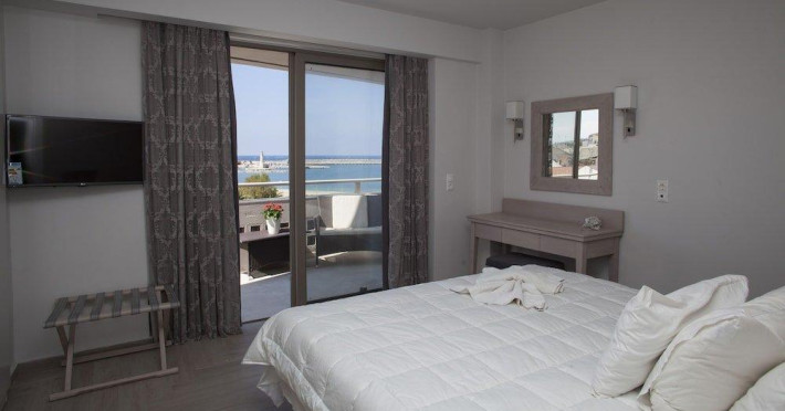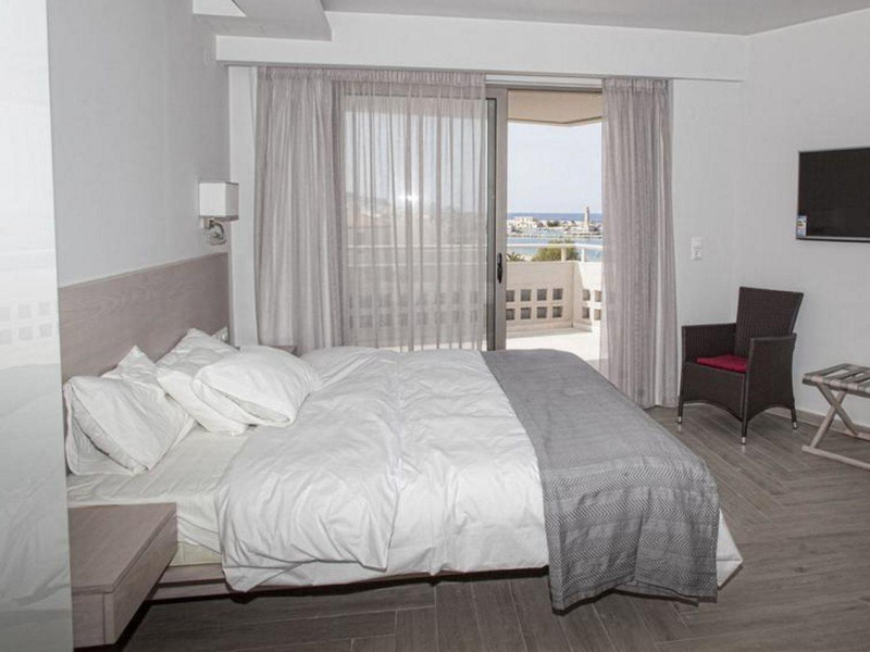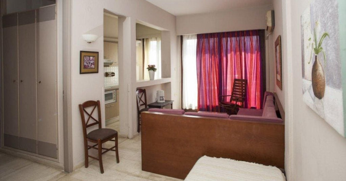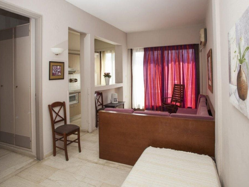 The hotel is situated on Agnostos Stratiotis Square, right in the epicentre of the quaint historic town of Rethymno. This pedestrian square is framed by the Venetian old town, the longest stretch of beach and the hotel. Furthermore, the central location allows visitors access to all amenities in Rethymno such as public transport, restaurants, supermarkets and local places of interest. Despite the supremely central location, the hotel benefits from the limited car traffic allowed around this square. Souda Airport is about 50 km from the establishment.The hotel is owned by the same family since 1980 with a focus on guests returning time and time again. A lot of guests have visited the hotel more than once thanks to the cosy and family-friendly atmosphere. The apartment hotel consists of a total of 50 apartments.The hotel's rooms are extremely spacious, all with a full-size balcony and full-size kitchen. The kitchens are equipped with a fridge, cooker, microwave, and tea and coffee making facilities. Each room is also en suite with a bath with power shower and a hairdryer. The furniture is contemporary in style, whilst the high ceilings provide plenty of light and the windows offer country or sea views. Further in-room amenities include a double bed and satellite/cable TV.There are sun loungers and parasols on the sandy beach.The hotel is centrally located, so upon arrival from Chania/Heraklion, enter the town and the hotel is on Agnostos Stratiotis Square.