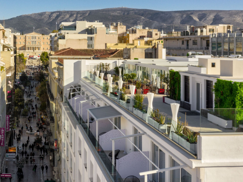 Elia Ermou Athens Hotel, an elegant 4-star hotel opened its door in late 2018 on the most commercial and famous street of Athens, proposing high quality servicesLocated in the city center and within walking distance from all important sights of the city. The Acropolis monument, the Acropolis Museum, the Old city of Athens (Plaka), the Parliament, the Tomb of Unknown Soldier.Modern decoration and comfort define all types of rooms and suites.Most rooms with private hammam and hydromassage bathtub offer special relaxation.A rich American buffet breakfast served at "Elysium Rooftop Athens" restaurant on the 7th floor of the hotel.Dining at the "Elysium Rooftop Athens" on the 7th floor of the hotel, with a stunning Acropolis view is an unforgettable experience.