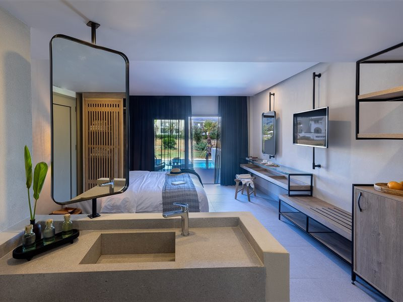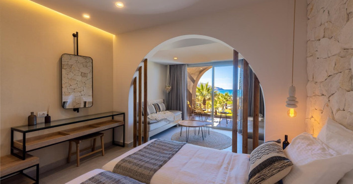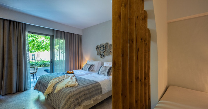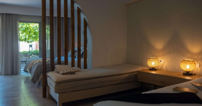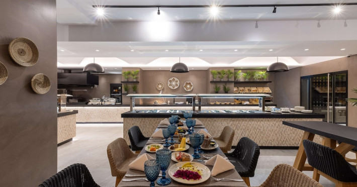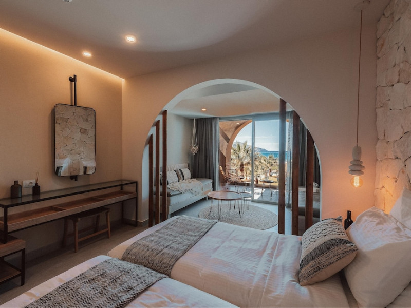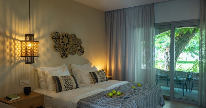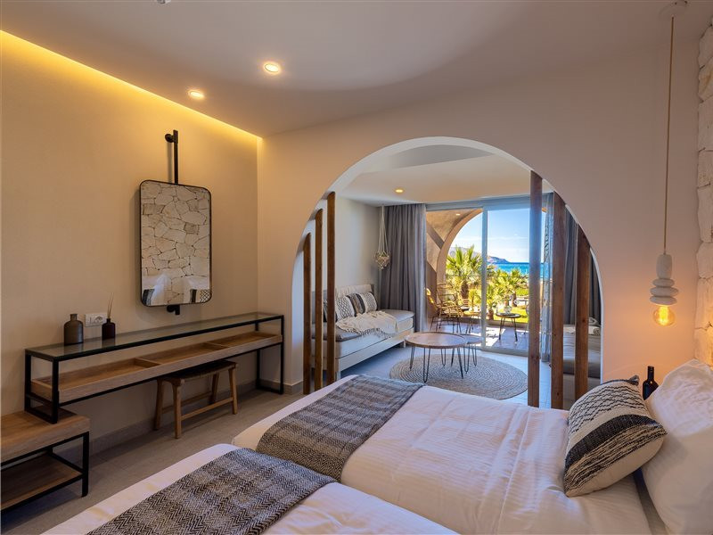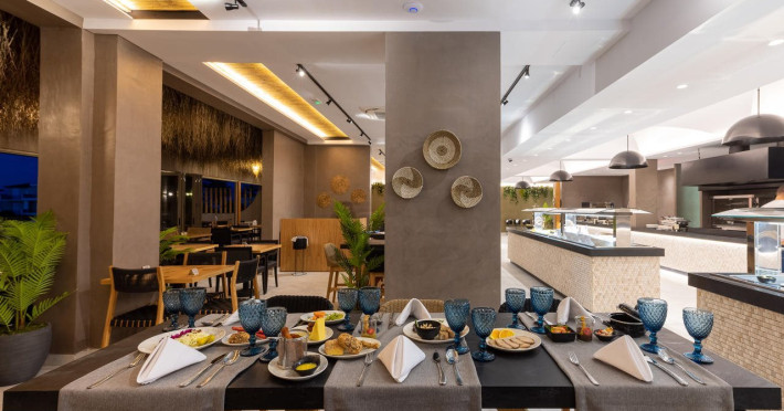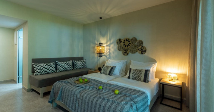Facilities and services include Wi-Fi connection, gym/fitness facilities, pool, bar, restaurant, children's play area and shop(s). It also offers kids club, kids pool by the beach, massage (extra charge), sauna, steam bath, and room service at extra charge from 12:00-21:00.Rooms feature air conditioning, television, safe, hairdryer, coffee/tea making facilities and Wi-Fi connection.**Please note that some of the above facilities may be closed due to weather / seasonal conditions.**In case of choosing the option of "all inclusive":The All Inclusive-concept includes all meals (breakfast, lunch, dinner and snacks) and mealtime drinks such as soft drinks, beer, wine, water and alcoholic drinks, all of local brands.Drinks are served from morning until late evening (approx until 22.00 -24.00 hrs).Opening times vary between different hotels.In certain hotels the activities program is also included.Address: Eliros Beach, Kavros 73007, Greece.