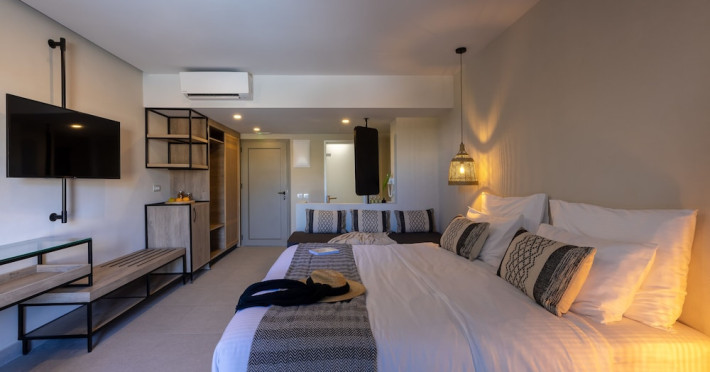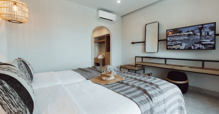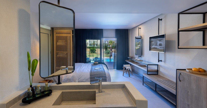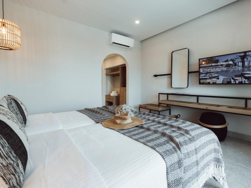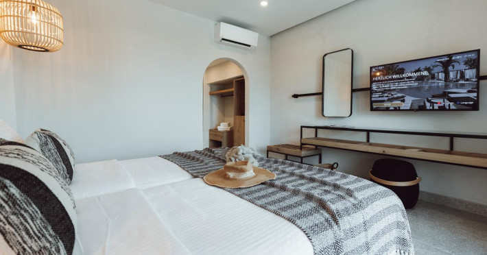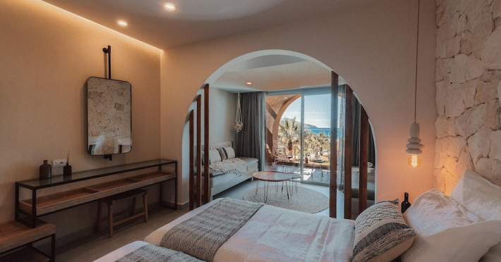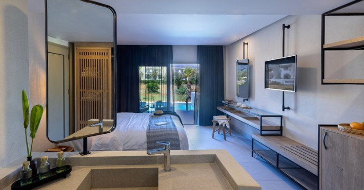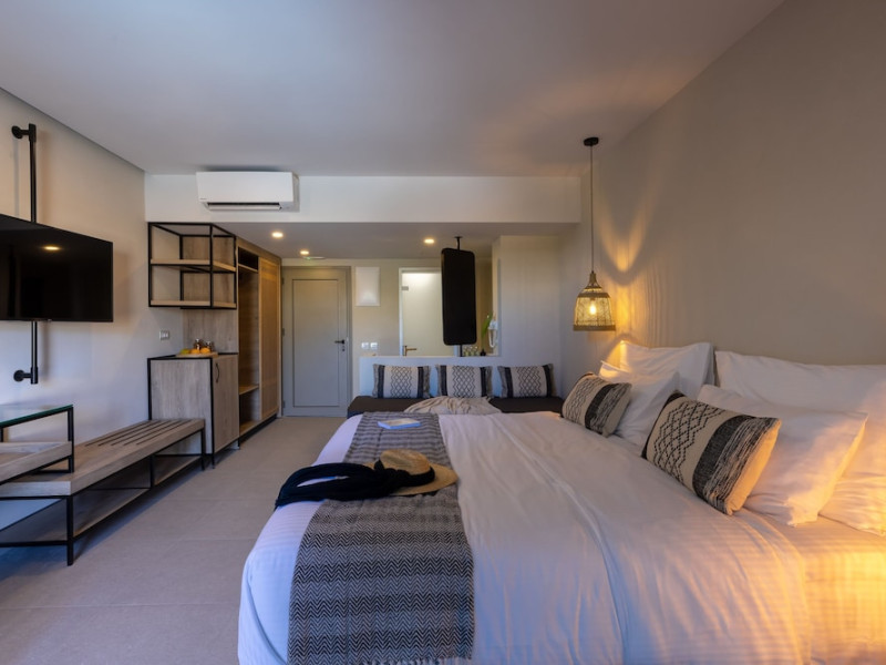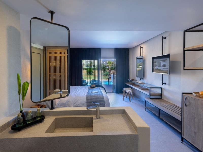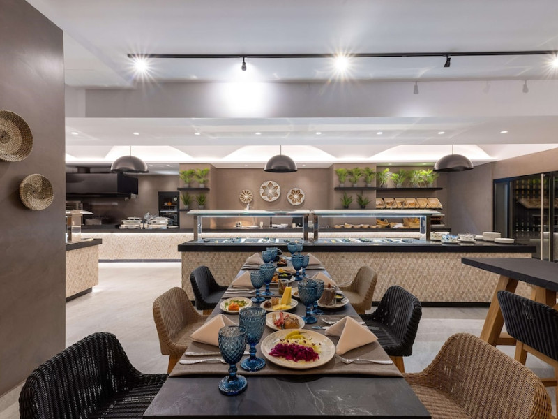 Facilities and services include Wi-Fi connection, gym/fitness facilities, pool, bar, restaurant, children's play area and shop(s). It also offers kids club, kids pool by the beach, massage (extra charge), sauna, steam bath, and room service at extra charge from 12:00-21:00.Rooms feature air conditioning, television, safe, hairdryer, coffee/tea making facilities and Wi-Fi connection.**Please note that some of the above facilities may be closed due to weather / seasonal conditions.**In case of choosing the option of "all inclusive":The All Inclusive-concept includes all meals (breakfast, lunch, dinner and snacks) and mealtime drinks such as soft drinks, beer, wine, water and alcoholic drinks, all of local brands.Drinks are served from morning until late evening (approx until 22.00 -24.00 hrs).Opening times vary between different hotels.In certain hotels the activities program is also included.Address: Eliros Beach, Kavros 73007, Greece.