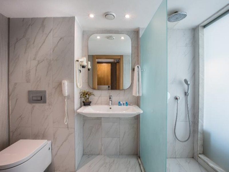 105 rooms, including 4 junior suites and 90 double rooms, are located on 6 storeys and can be reached by lift. Guests are warmly welcomed by multilingual staff at the 24-hour reception desk in the lobby. Check-in/check-out service is available round the clock. Amenities include a cloakroom, baggage storage service, safe and currency exchange service. Wireless internet access is provided in public areas. The tour desk offers assistance with booking excursions. The hotel has a range of facilities for guests with disabilities. The hotel has wheelchair-accessible facilities. There are a number of shops, including a supermarket. The grounds of the hotel feature a playground and a lovely garden. Additional amenities include a TV room and a playroom. Guests arriving by car can park their vehicles in the garage (no extra charge) or in the car park. Further services and facilities include a 24-hour security service, a babysitting service, a car hire service, medical assistance, a transfer service, room service (for a fee), an alarm call service, a laundry service, a coin-operated laundry and a hotel shuttle bus. A bicycle hire service provides all the necessary equipment for exploring the surrounding area. Complimentary newspapers are available. The business centre is on hand for guests business requirements and provides a fax machine.