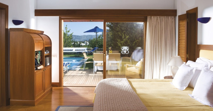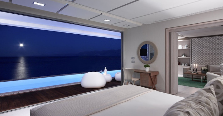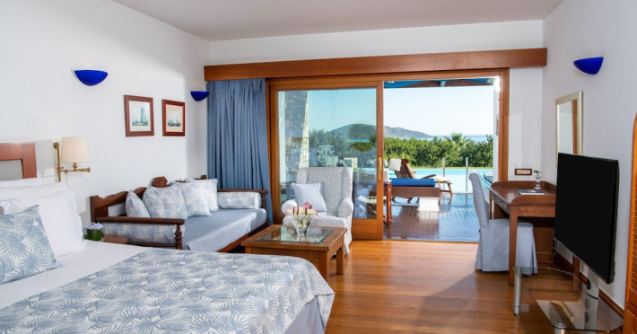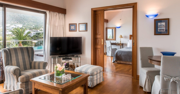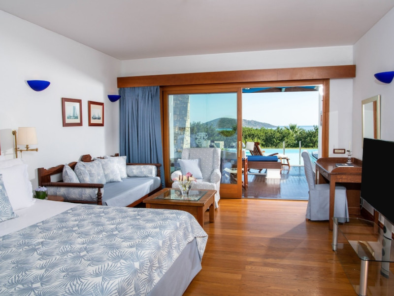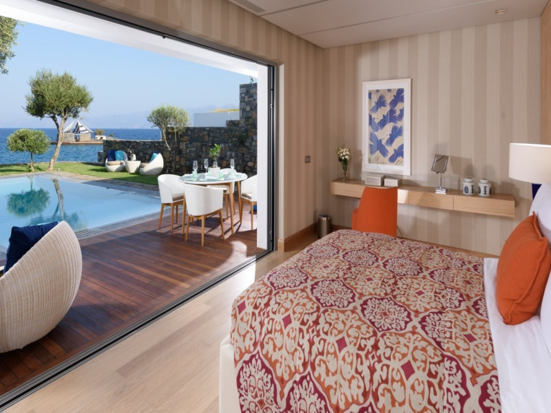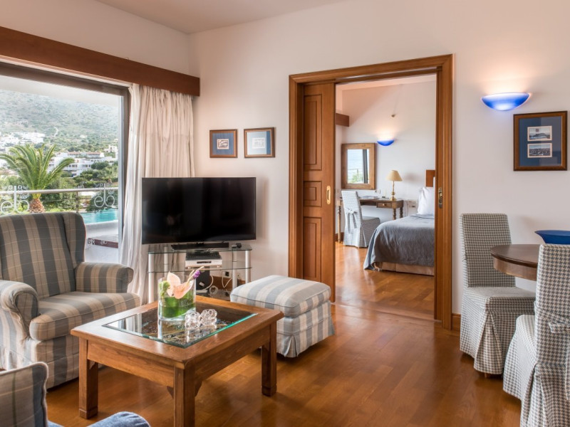Facilities and services include restaurants, bars, swimming pool, children's pool located in Elounda Bay Palace , wireless Internet access, elevator, parking, gym, spa treatments (extra charge), tennis courts, mini golf, mini club (season), business center, conference/meeting room and 24-hour reception.Rooms feature, minibar, air conditioning, wireless Internet access, safe, TV, telephone, bathrobe, slippers, hairdryer, bathroom and balcony/terrace. Please note that some of the above facilities may be closed due to weather / seasonal conditions.Address: Elounda, 72053 Crete, Greece
