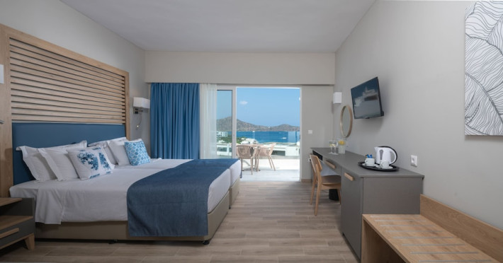 Facilities and services include restaurant, swimming pool, children's pool, bar, wireless Internet access, kids club, spa treatments (extra charge), tennis court (extra charge), table tennis, fitness center, sauna (extra charge), mini market, parking, elevator and 24 hour reception. Rooms feature mini fridge, TV, telephone, air conditioning, safe (extra charge), wireless Internet access, bathroom and hairdryer.Suites also feature kettle, bathrobes and slippers.Please note that some of the above facilities may be closed due to weather / seasonal conditions.Address: Elounda Lassithi, 72053 Elounda, Crete, Greece.
