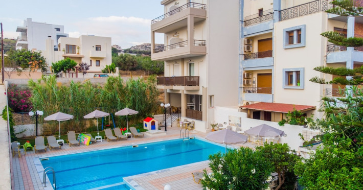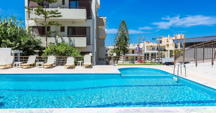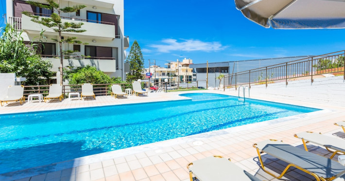 Complimentary wireless internet access is available throughout the property. Guests can enjoy a pool with free sunbeds, a terrace, and a communal living room. Breakfast is served daily. Amenities include luggage storage, laundry facilities, and a safe deposit box at the front desk. The hotel is within walking distance of a bus stop. Free private parking is available on site. The nearest airports are Ioannis Daskalogiannis Airport (CHQ) and Nikos Kazantzakis Airport (HER). Note: Reception with limited opening hours. Please advise flight number and estimated arrival time when booking this hotel.