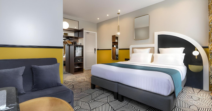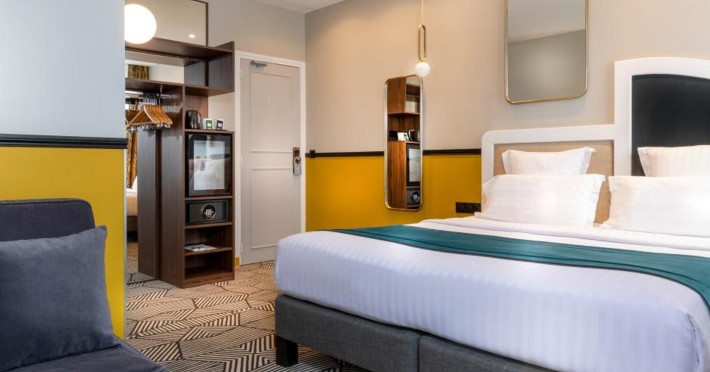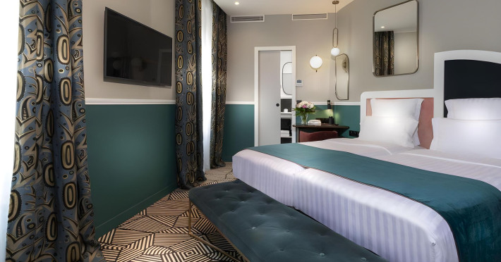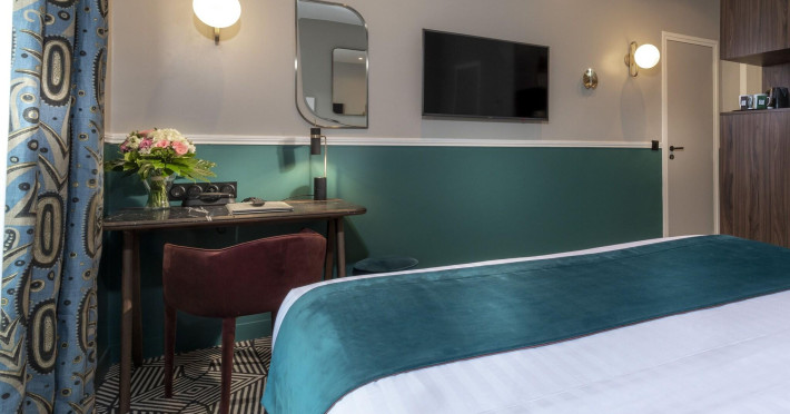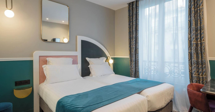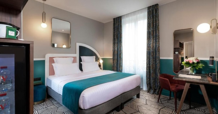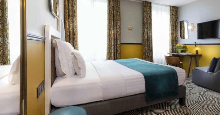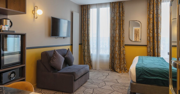 Located in the Latin Quarter/5th Arrondissement of Paris, Hôtel Elysa - Luxembourg is near Luxembourg Gardens and the Panthéon. It offers 32 individually decorated, air-conditioned guestrooms featuring complimentary Wi-Fi, satellite TV, a refrigerator, a minibar (with some complimentary items), a safe, a desk, and a private bathroom with a deep soaking bathtub and complimentary toiletries. Daily housekeeping is provided. The hotel offers concierge services, luggage storage, and a bar/lounge. A buffet breakfast is available for a fee, and airport transfers are available for a surcharge. The ELYSA LUXEMBOURG is a Tourist hotel. The nightlife/restaurants are easily accessible by taxi or bus from the hotel.