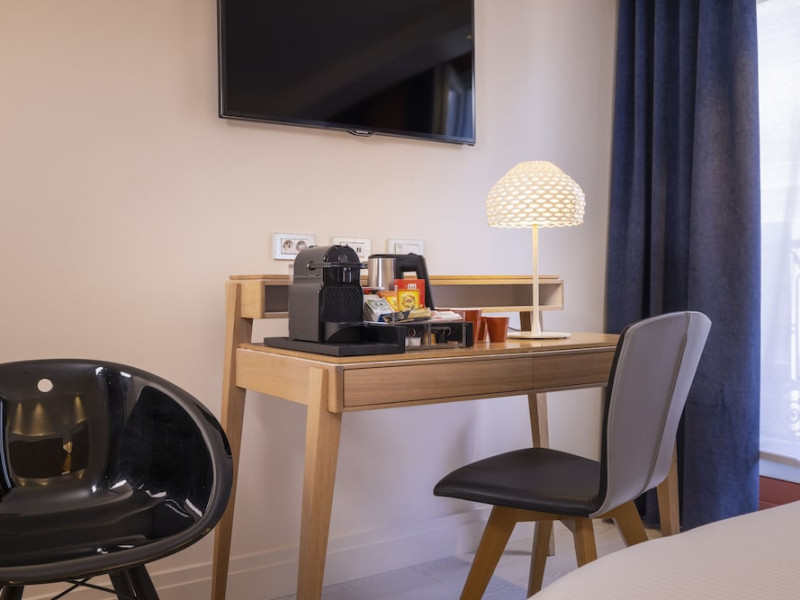 Located in central Paris, near the Elysée Palace and Rue du Faubourg Saint-Honoré, Hotel Elysees 8 offers convenient access to Place de la Concorde, La Madeleine, and the Champs-Élysées. The Miromesnil metro station is nearby. The hotel features a restaurant, and a veranda for summer breakfast. A buffet breakfast is served on weekdays from 6:30 AM to 10:30 AM and on weekends from 6:30 AM to 11:00 AM for a fee. Room service is available during limited hours. The hotel offers amenities such as complimentary newspapers in the lobby, dry cleaning/laundry services, and a 24-hour front desk. Guests can enjoy complimentary Wi-Fi, luggage storage, safety deposit boxes, ticket service, tours, and daily housekeeping. The hotel provides air-conditioned rooms with cable TV, phones, safes, coffee/tea makers, and private bathrooms with complimentary toiletries and hair dryers. Minibars are also available. Onsite parking is available (subject to charges), as well as offsite parking. The hotel is smoke-free and offers a bar, vending machines, and a shared kitchen. The ELYSEES 8 is a Tourist hotel. The nightlife/restaurants are easily accessible by taxi or bus from the hotel.