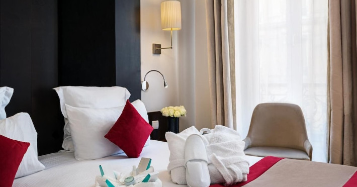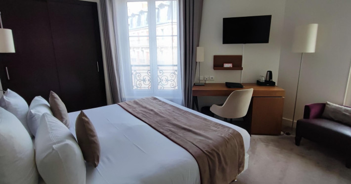 Centrally located in Paris, near the Champs-Élysées, Eiffel Tower, Avenue Georges V, and Arc de Triomphe, the Elysées Bassano is a boutique hotel offering 40 air-conditioned guestrooms with private bathrooms. Amenities include free Wi-Fi, a 24-hour reception, a bar/lounge, room service (limited hours), laundry service, and concierge service. Safety deposit boxes are available. Each room is equipped with a minibar, satellite TV, a direct-dial telephone, individually regulated air conditioning and heating, and a hairdryer. A buffet breakfast is available. The hotel is located near the Georges V metro station. The Elysees Bassano Hotel(FORMELY - BW HOTEL ELYSEES BASSA) is a Tourist hotel. The nightlife/restaurants are easily accessible by taxi or bus from the hotel.
