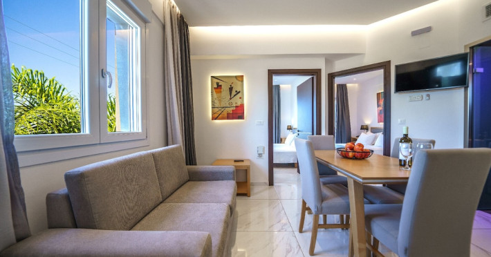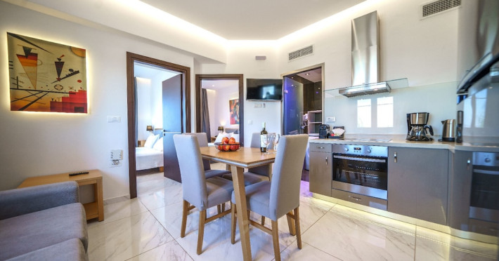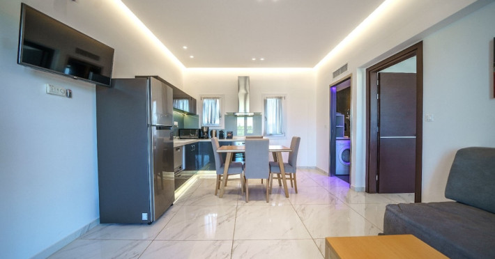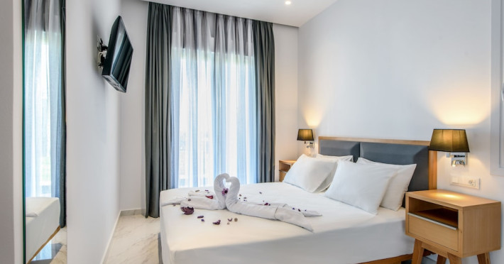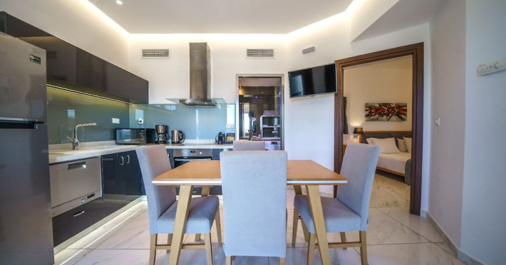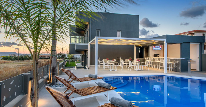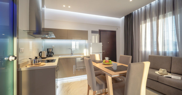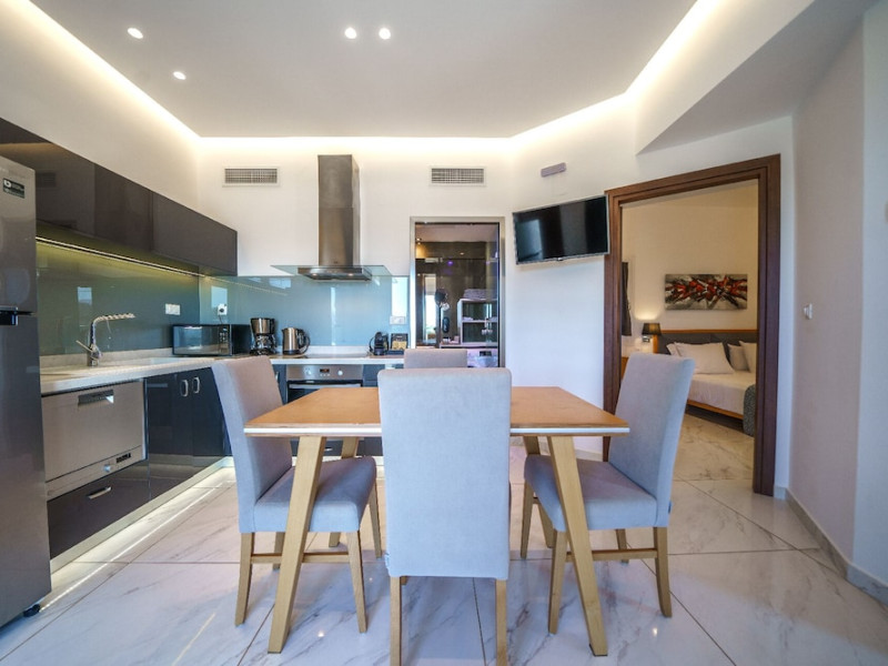 Located in Anissaras, Elysian Suites is by the sea and convenient to Sarandaris Beach and Convention Centre Creta Maris. This 4-star apartment is within close proximity of Port of Hersonissos and St. Paraskevi Church. Make yourself at home in one of the 8 air-conditioned rooms featuring kitchens with full-sized refrigerators/freezers and ovens. Rooms have private furnished balconies. Flat-screen televisions with satellite programming provide entertainment, while complimentary wireless Internet access keeps you connected. Conveniences include safes and coffee/tea makers, and housekeeping is provided daily. Take advantage of recreational opportunities offered, including an outdoor pool, a fitness center, and bicycles to rent. Additional features at this apartment include complimentary wireless Internet access, concierge services, and a picnic area. Enjoy a meal at a restaurant or in a coffee shop/café. Or stay in and take advantage of the apartment's room service (during limited hours). Relax with your favorite drink at a bar/lounge or a poolside bar. Featured amenities include dry cleaning/laundry services, luggage storage, and laundry facilities. For a surcharge, guests may use a roundtrip airport shuttle (available 24 hours) and a ferry terminal shuttle.