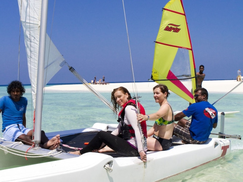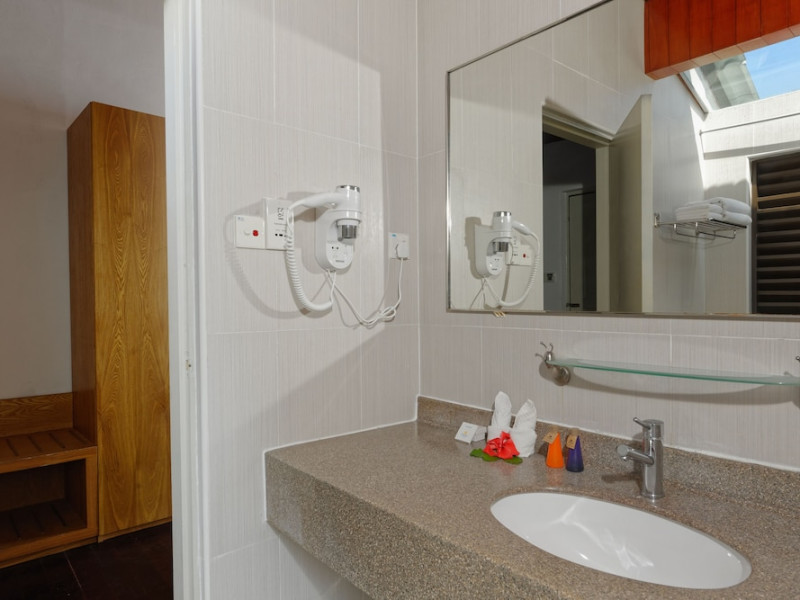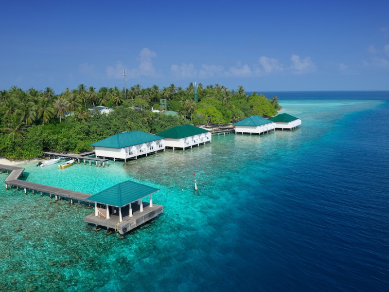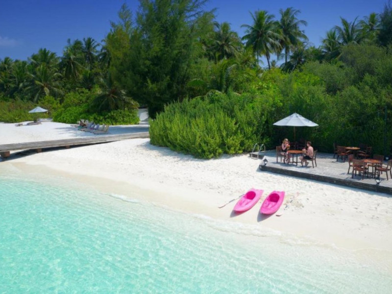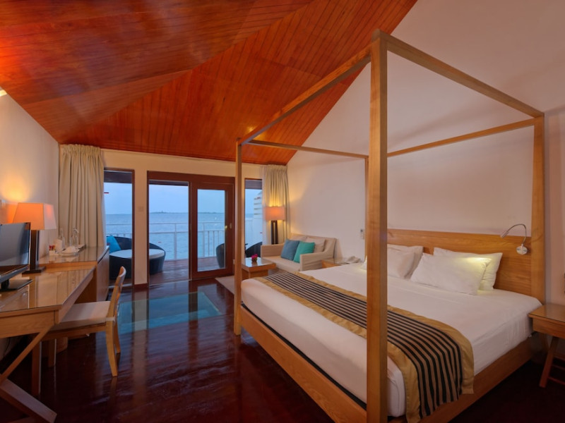 Embudu Village, located in South Male’ Atoll, is a beachfront resort accessible via a 20-minute speedboat ride from Velana International Airport. This 3km-long private island boasts lush tropical vegetation and pristine white sandy beaches. The resort offers 122 air-conditioned guest rooms, including Beach Bungalows and Water Villas, each equipped with a hairdryer, hot and cold water, international direct dial telephone, minibar, personal safe, and satellite television. Private bathrooms feature rainfall showerheads and complimentary toiletries. Additional amenities include complimentary wireless internet access, concierge services, gift shops/newsstands, a 24-hour front desk, luggage storage, and complimentary newspapers in the lobby. Dining options include the Main Restaurant, a coffee shop/cafe, and room service (limited hours). A complimentary continental breakfast is served daily (7 AM - 9:30 AM). A bar/lounge is also available. Recreational facilities include a full-service spa offering massages, a restaurant, bar, and disco, as well as various water sports (catamaran sailing, night diving, scuba diving, snorkeling, windsurfing), and land-based activities (badminton, table tennis, volleyball, darts, tennis, island hopping, night fishing, aerial excursions). Meals are available on a full-board basis. Nearby beaches include Embudu Beach (steps away), Bodu Hurraa Beach (0.2 mi), Biyadoo Beach (0.3 mi), and Gulhi Beach (0.3 mi). Diverland – Embudu offers a wide range of scuba diving courses. The Embudu Village is a Beach Resort, Resort, Tourist hotel. The nightlife/restaurants are easily accessible by taxi or bus from the hotel.
