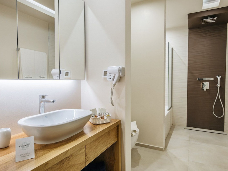 Located in Zakynthos (Elation), Emerald Villas is close to Makris Gialos Beach and Blue Caves. This 4-star villa is within the vicinity of Xigia Beach and Alykes Beach.Rooms Make yourself at home in one of the 8 air-conditioned rooms featuring private pools and private spa tubs. Kitchens are outfitted with full-sized refrigerators/freezers, stovetops, and microwaves. 21-inch plasma televisions with satellite programming provide entertainment, while complimentary wireless Internet access keeps you connected. Private bathrooms with separate bathtubs and showers feature jetted bathtubs and complimentary toiletries. Pamper yourself with onsite body treatments and facials. If you're looking for recreational opportunities, you'll find an outdoor pool and a spa tub. This villa also features complimentary wireless Internet access, tour/ticket assistance, and barbecue grills.Business, Other Amenities Featured amenities include limo/town car service, luggage storage, and laundry facilities. Free self parking is available onsite.