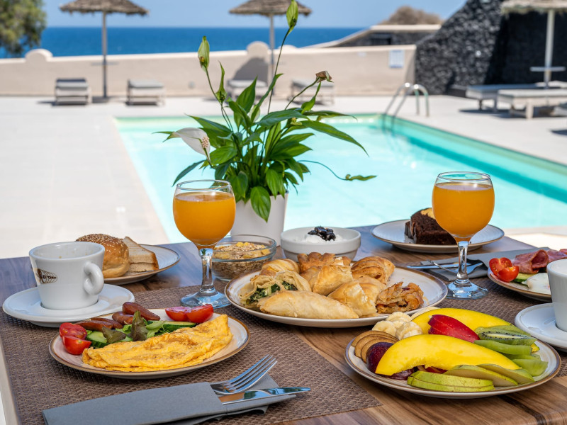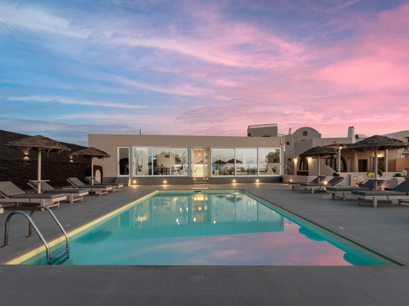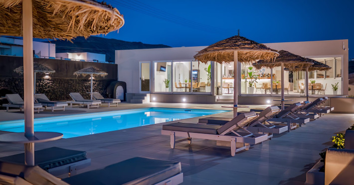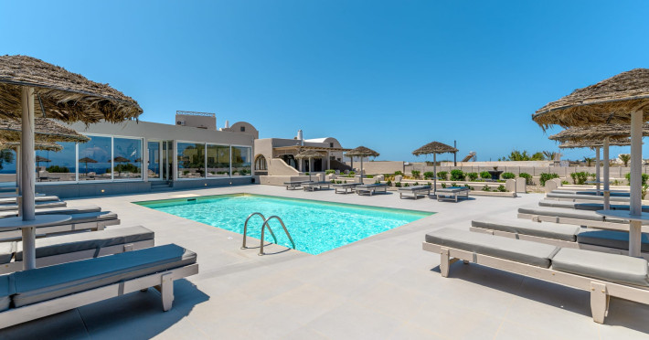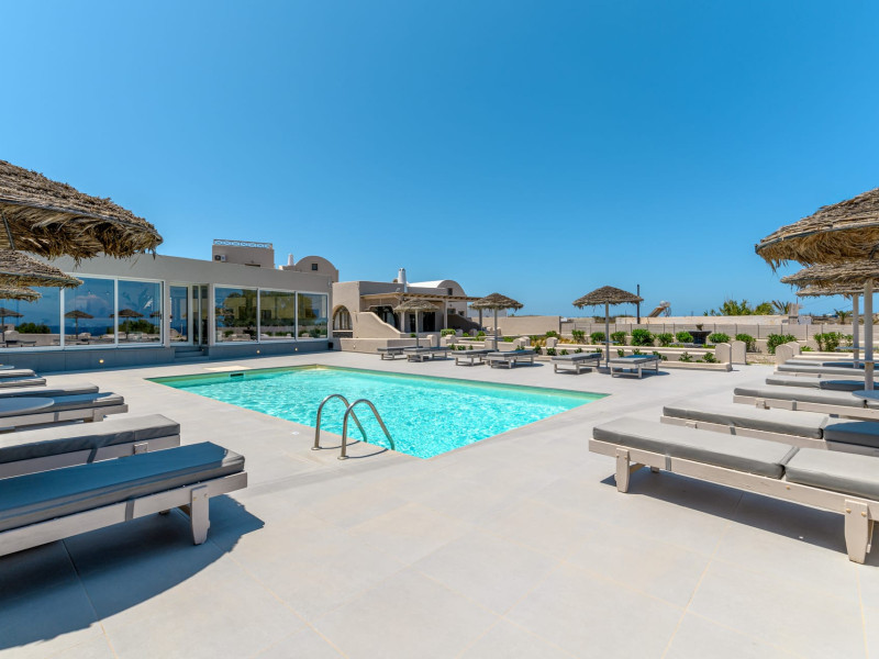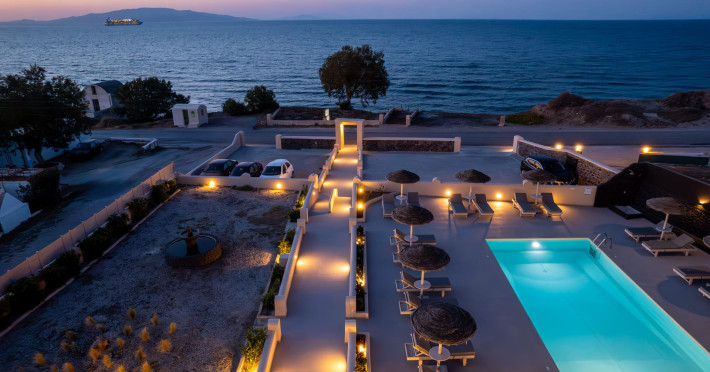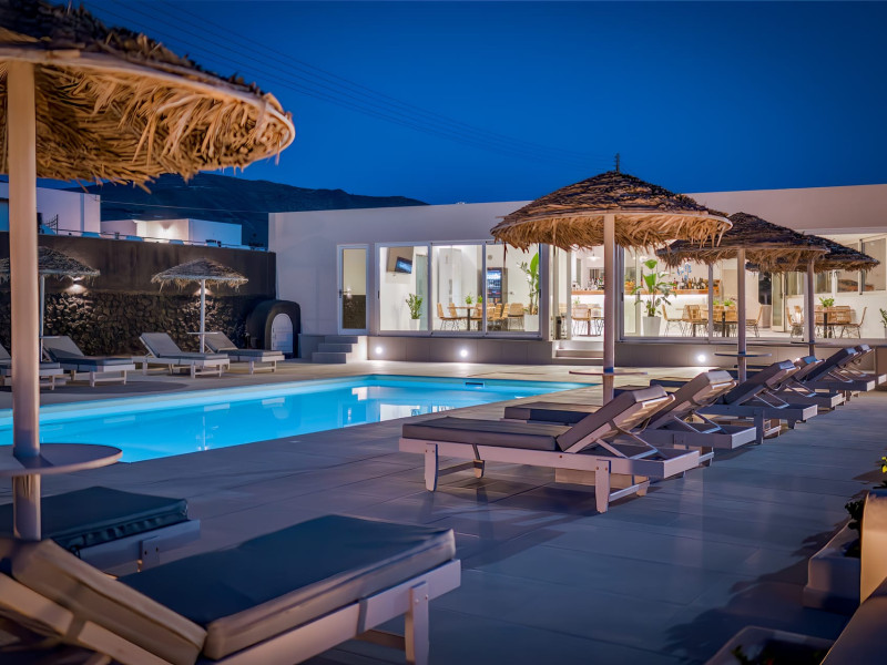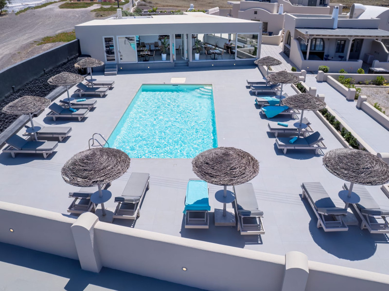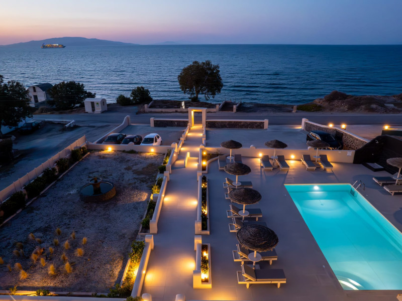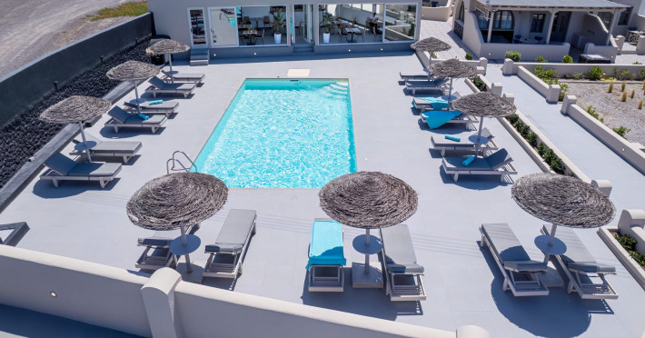 The Serenity of Santorini, Right Next to the Magic of Oia.Dive into Bliss: Imagine a place where the iconic charm of Santorini meets serene luxury. En Plo Boutique Suites is your intimate retreat, perfectly blending traditional Cycladic elegance with modern comfort. Located moments from the cosmopolitan allure of Oiayet nestled in a peaceful seaside setting, we offer an ideal escape for romantic getaways and those seeking genuine tranquility and relaxation.Refresh yourself in the crystal-clear, turquoise waters of our stunning outdoor swimming pool. Relax on luxurious sun loungers with a cocktail from our Pool-Bar & Restaurant.Taste the Aegean: Start your day with a delightful, fresh Μediterranean breakfast, featuring ingredients picked right from our own gardens. Enjoy light snacks and an exquisite lunch menu, perfectly paired with a curated list of local Santorini wines. Our commitment to fresh, healthy, "farm-to-table" meals is a hallmark of the En Plo experience.Your Private Retreat: Our elegantly decorated, spacious suites are a masterclass in Cycladic style, each with a private entrance and all the modern amenities you need. Wake up to endless views of the magnificent azure Aegean Sea and the wonderful inland scenery from your "private veranda".The Perfect Starting Point: While offering a peaceful sanctuary, En Plo's convenient location ensures you won't miss a thing. We provide easy, stress-free access to all of Santorini's famous beache, important sights, and of course, the magical, colorful sunsets of Oia. Free on-site parking makes exploring a breeze.Why Guests Adore En Plo: Our guests consistently praise the impeccable cleanliness, exceptional comfort, and the warm, personalized service from our dedicated team. We are your home away from home, offering outstanding value and a genuine local connection. For a truly authentic, romantic, and tranquil stay - where the owners' personal touch and fresh, homemade cuisine elevate every moment - En Plo Boutique Suites is the discerning choice.