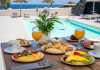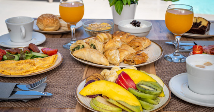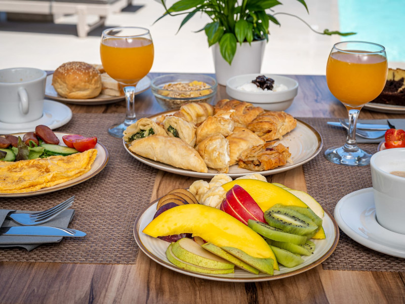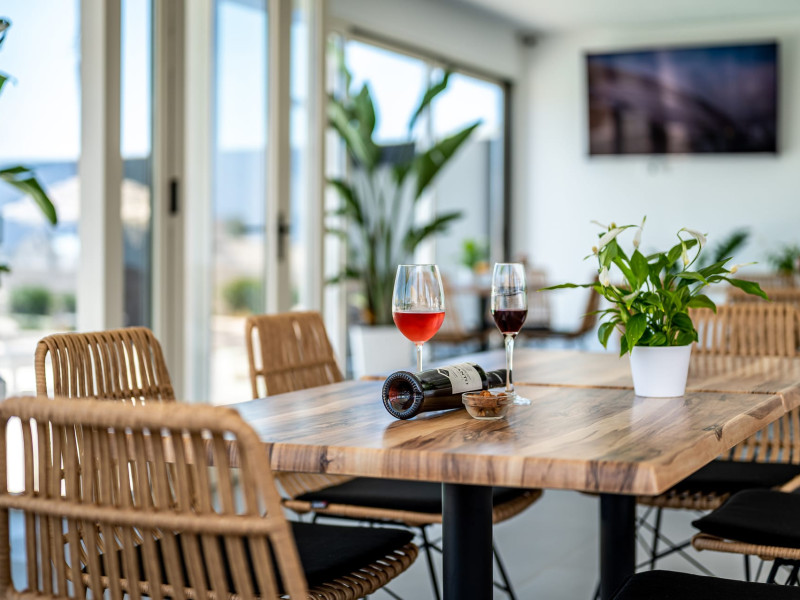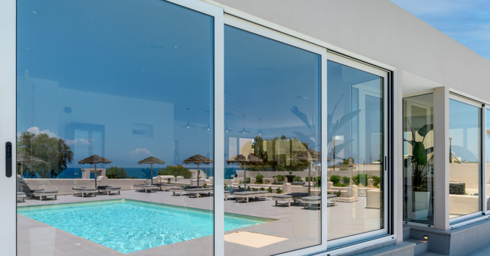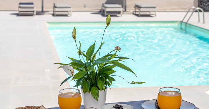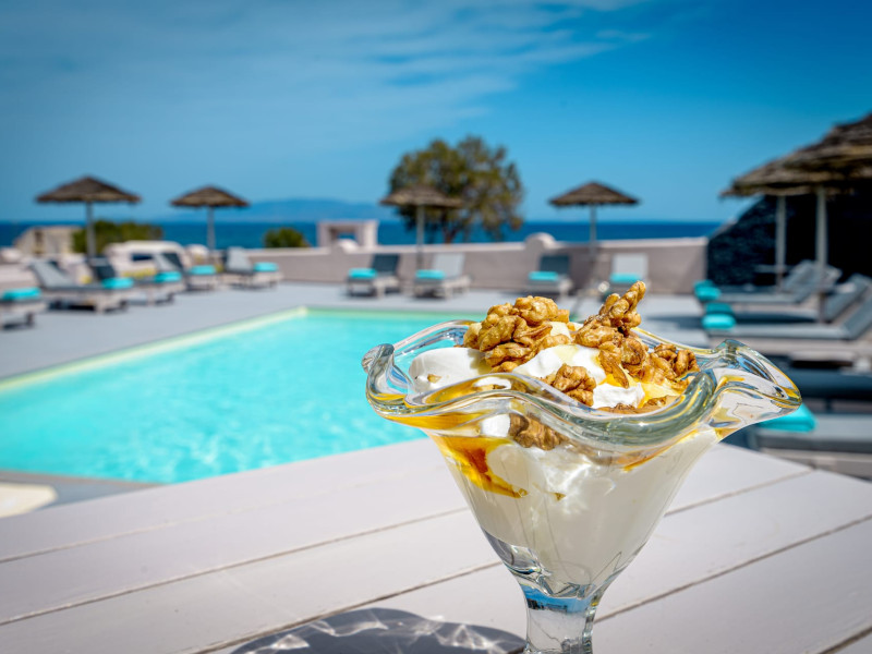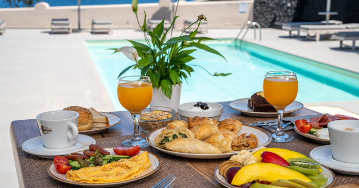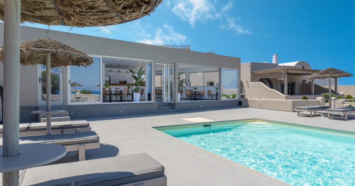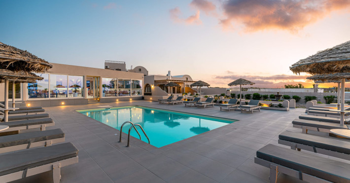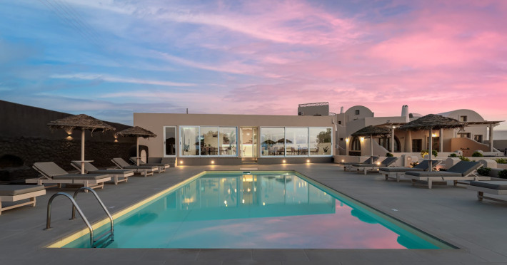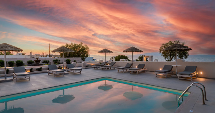 The Serenity of Santorini, Right Next to the Magic of Oia.Dive into Bliss: Imagine a place where the iconic charm of Santorini meets serene luxury. En Plo Boutique Suites is your intimate retreat, perfectly blending traditional Cycladic elegance with modern comfort. Located moments from the cosmopolitan allure of Oiayet nestled in a peaceful seaside setting, we offer an ideal escape for romantic getaways and those seeking genuine tranquility and relaxation.Refresh yourself in the crystal-clear, turquoise waters of our stunning outdoor swimming pool. Relax on luxurious sun loungers with a cocktail from our Pool-Bar & Restaurant.Taste the Aegean: Start your day with a delightful, fresh Μediterranean breakfast, featuring ingredients picked right from our own gardens. Enjoy light snacks and an exquisite lunch menu, perfectly paired with a curated list of local Santorini wines. Our commitment to fresh, healthy, "farm-to-table" meals is a hallmark of the En Plo experience.Your Private Retreat: Our elegantly decorated, spacious suites are a masterclass in Cycladic style, each with a private entrance and all the modern amenities you need. Wake up to endless views of the magnificent azure Aegean Sea and the wonderful inland scenery from your "private veranda".The Perfect Starting Point: While offering a peaceful sanctuary, En Plo's convenient location ensures you won't miss a thing. We provide easy, stress-free access to all of Santorini's famous beache, important sights, and of course, the magical, colorful sunsets of Oia. Free on-site parking makes exploring a breeze.Why Guests Adore En Plo: Our guests consistently praise the impeccable cleanliness, exceptional comfort, and the warm, personalized service from our dedicated team. We are your home away from home, offering outstanding value and a genuine local connection. For a truly authentic, romantic, and tranquil stay - where the owners' personal touch and fresh, homemade cuisine elevate every moment - En Plo Boutique Suites is the discerning choice.