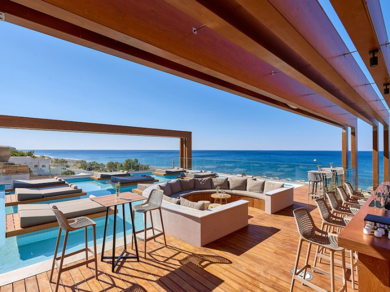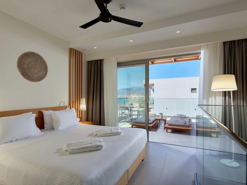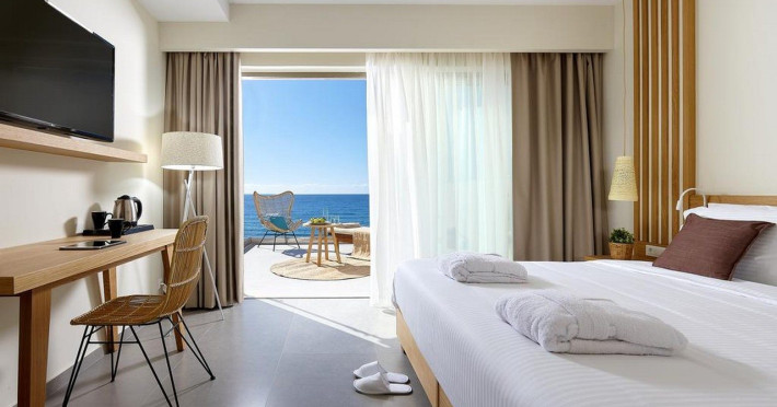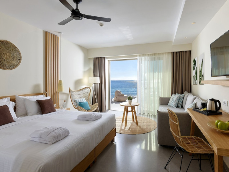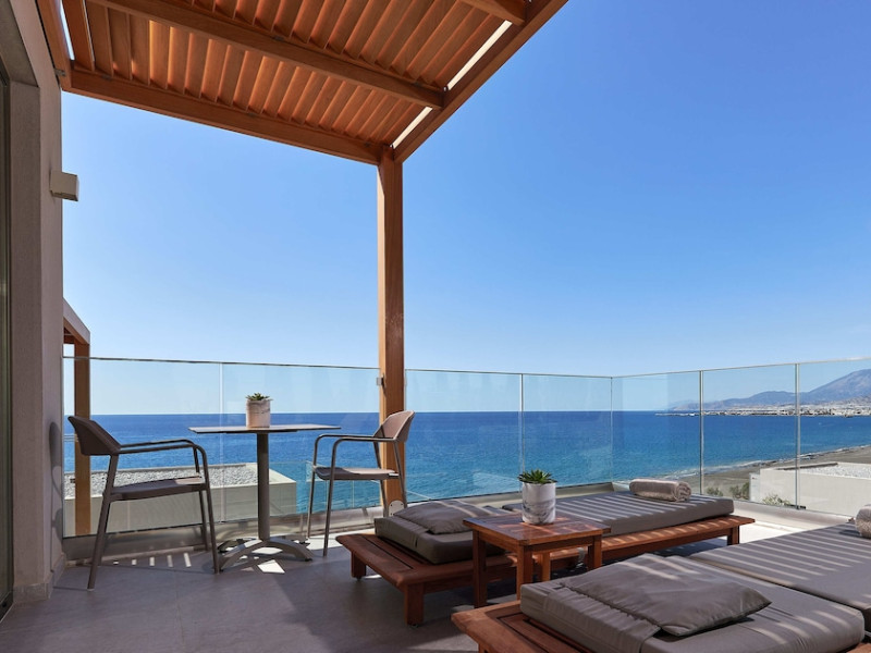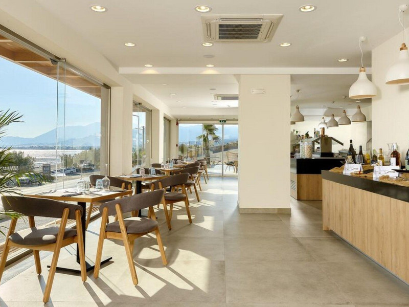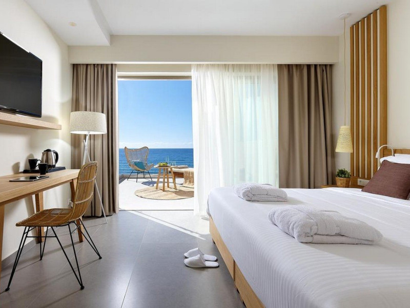 Additional amenities include a desk, safe, and phone. A complimentary buffet breakfast is served daily from 7:30 AM to 10:30 AM. Onsite amenities include a seasonal outdoor pool, fitness center, restaurant serving Greek, Mediterranean, and Mexican cuisine (with vegetarian, vegan, and gluten-free options available), a coffee shop/cafe, bar/lounge, beach bar, and poolside bar. Additional services include concierge services, wedding services, dry cleaning/laundry services, a 24-hour front desk with multilingual staff, and airport shuttle service (surcharge applies). Free self parking is available. The hotel is located within a 5-minute drive of the Ierapetra Archaeological Museum and Ierapetra Venetian Fort, and approximately 2.1 mi from Ierapetra Beach and 3.8 mi from Koutsounari Long Beach. Nearby attractions include Ierapetra Archaeological Museum (2.7 km), Ierapetra Beach (2.7 km), Ierapetra Venetian Fort (3.1 km), Koutsounari Long Beach (6.1 km), Chrissi Island (7.7 km), and many other beaches within a 24 km radius. The nearest airports are Sitia (JSH) and Nikos Kazantzakis Airport (HER).