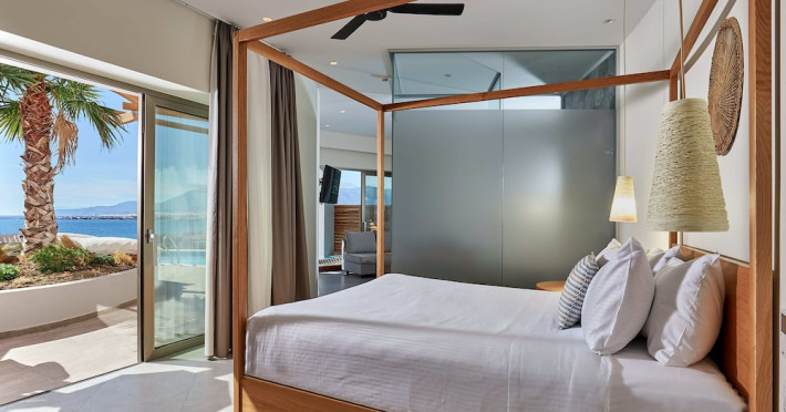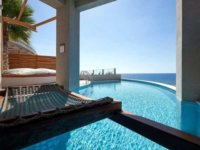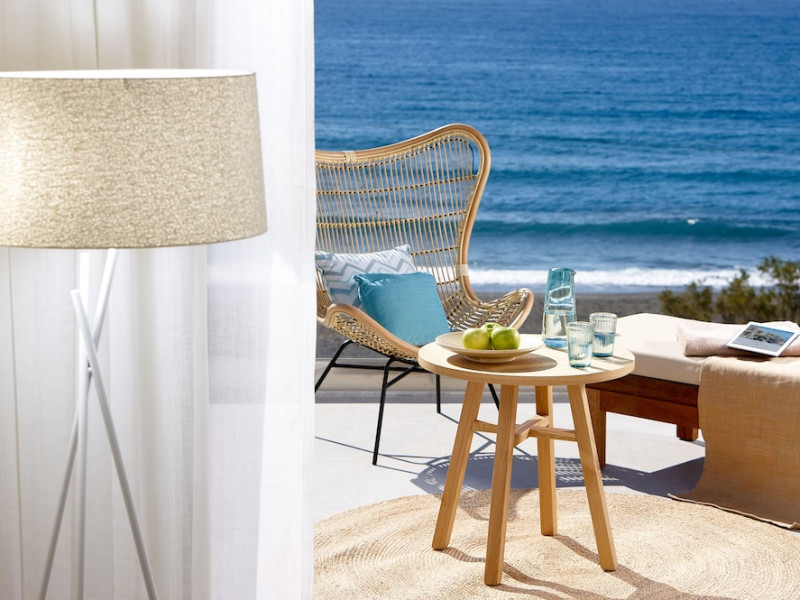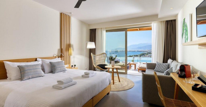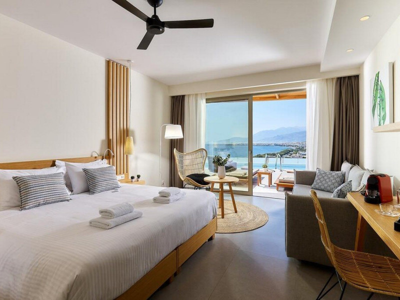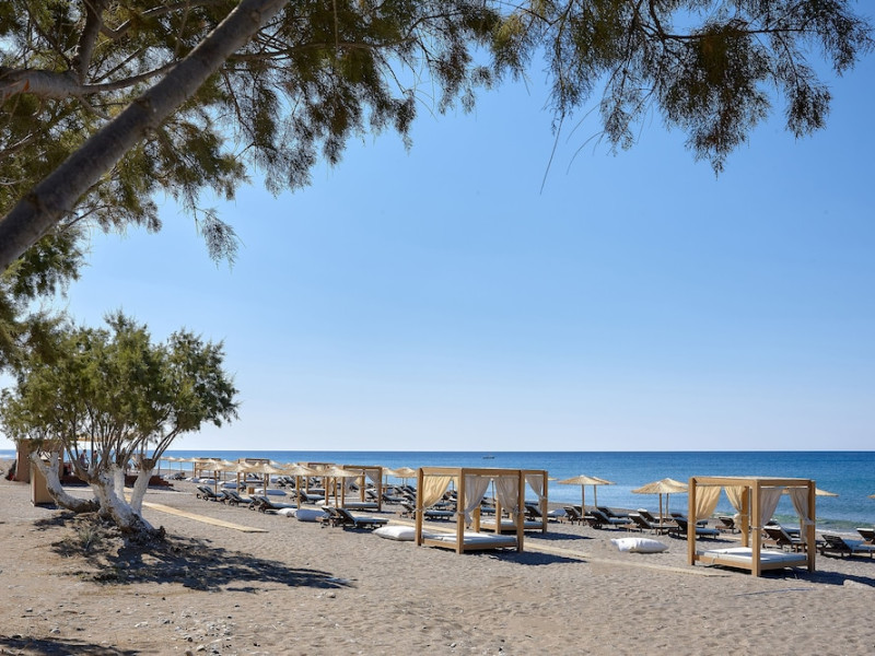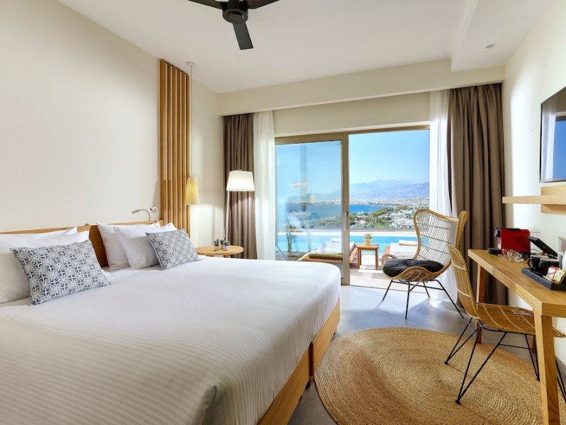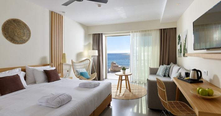 Additional amenities include a desk, safe, and phone. A complimentary buffet breakfast is served daily from 7:30 AM to 10:30 AM. Onsite amenities include a seasonal outdoor pool, fitness center, restaurant serving Greek, Mediterranean, and Mexican cuisine (with vegetarian, vegan, and gluten-free options available), a coffee shop/cafe, bar/lounge, beach bar, and poolside bar. Additional services include concierge services, wedding services, dry cleaning/laundry services, a 24-hour front desk with multilingual staff, and airport shuttle service (surcharge applies). Free self parking is available. The hotel is located within a 5-minute drive of the Ierapetra Archaeological Museum and Ierapetra Venetian Fort, and approximately 2.1 mi from Ierapetra Beach and 3.8 mi from Koutsounari Long Beach. Nearby attractions include Ierapetra Archaeological Museum (2.7 km), Ierapetra Beach (2.7 km), Ierapetra Venetian Fort (3.1 km), Koutsounari Long Beach (6.1 km), Chrissi Island (7.7 km), and many other beaches within a 24 km radius. The nearest airports are Sitia (JSH) and Nikos Kazantzakis Airport (HER).