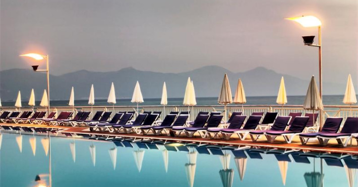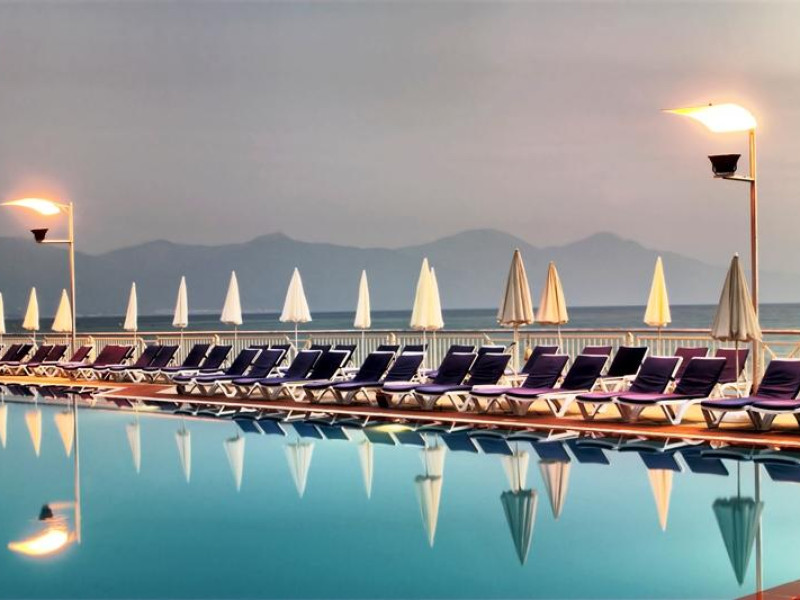 ACTIVITIES (FREE OF CHARGE) :Turkish Bath, Sauna, Fitness Center, Dart, Boccia, Table Tennis, Mini Golf, Sun Beds-Beach Umbrella-Towel, Beach Vollevball, Tennis Court, Funfair, Wi-Fi Free Zone(in certain area) Water Slides, Mini Football, Car Parking, Animation Programs and Mini Club, A La Carte Restaurants, Canoe and Pedalo (15 min. Per Room, Per Stay. According to weather conditions) and Jacuzzi.