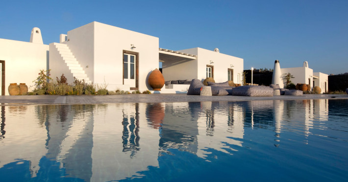 Three suites feature varied one-bedroom layouts, with easy open floor plans and gracious indoor and outdoor living areas that are easily adapted according to guests’ specific needs. A separate two-bedroom bungalow, adjacent to the Estate’s spa facility, offers even more flexibility. Acclaimed international interior designer Paola Navone has brought her sophisticated Aegean aesthetics, using a color palette based on whites and dark grays splashed with colors reflecting the sea and the blooming landscape, inviting the warmth and serenity of the outdoors into each room. Walls are inlaid with local stone, in irresistibly rustic contrast to luxurious fabrics by Rubelli of Venice and bath fixtures by Stella of Italy.