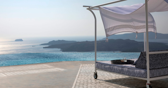 Perched on a 1,000-foot cliff overlooking Santorini’s iconic caldera on a lush two-acre Estate, a new luxury retreat offering an experience as extraordinary as its unrivalled location.