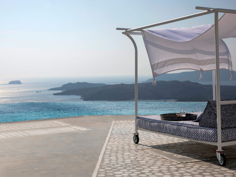 The island’s first truly private, exclusive-use resort Estate meticulously designed for year- round enjoyment. Reflecting a new concept of hospitality represented by the quintessentially Greek philosophy of “philotimo,” the property’s resident host is on hand to make guests’ every desire a reality. The Estate’s chef designs menus each day around guests’ personal tastes and cravings, showcasing the finest offerings of the region. Tucked away on a cliff 1,000 feet above the Aegean, this utterly unique property offers the most breath-taking views on the planet, capturing Santorini’s iconic whitewashed villages, epic sunsets, and vibrant land and seascapes.