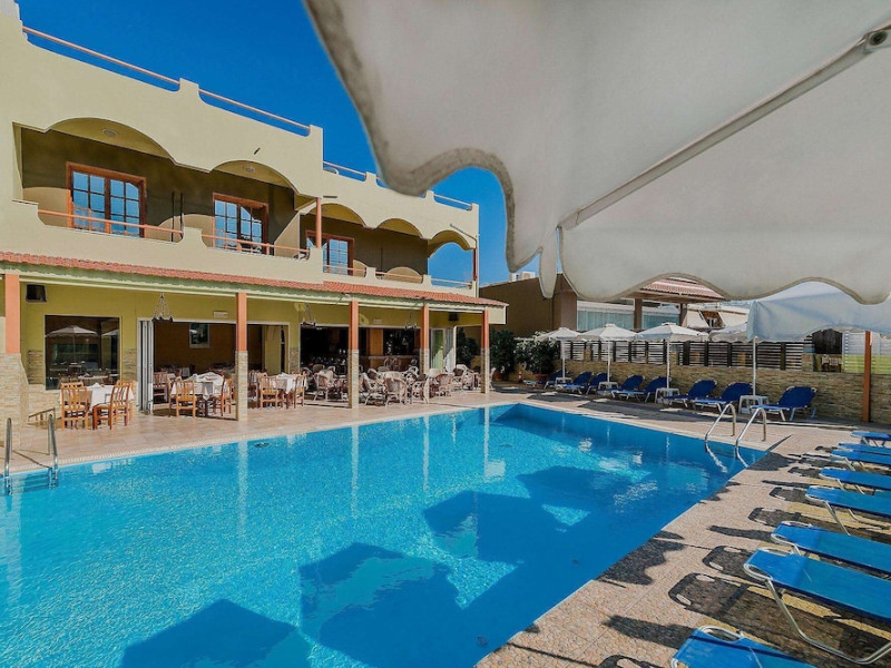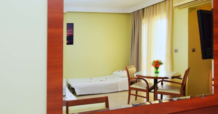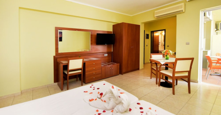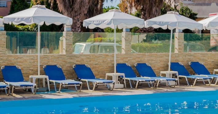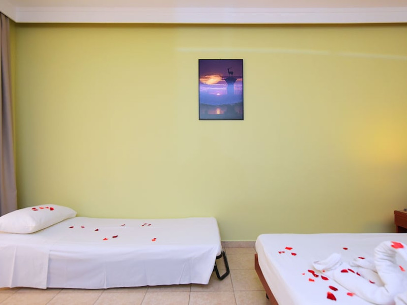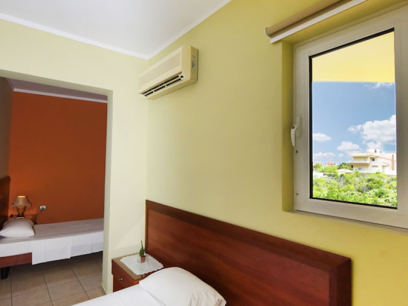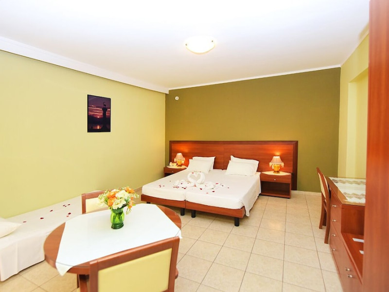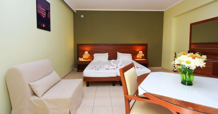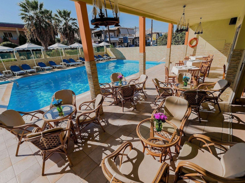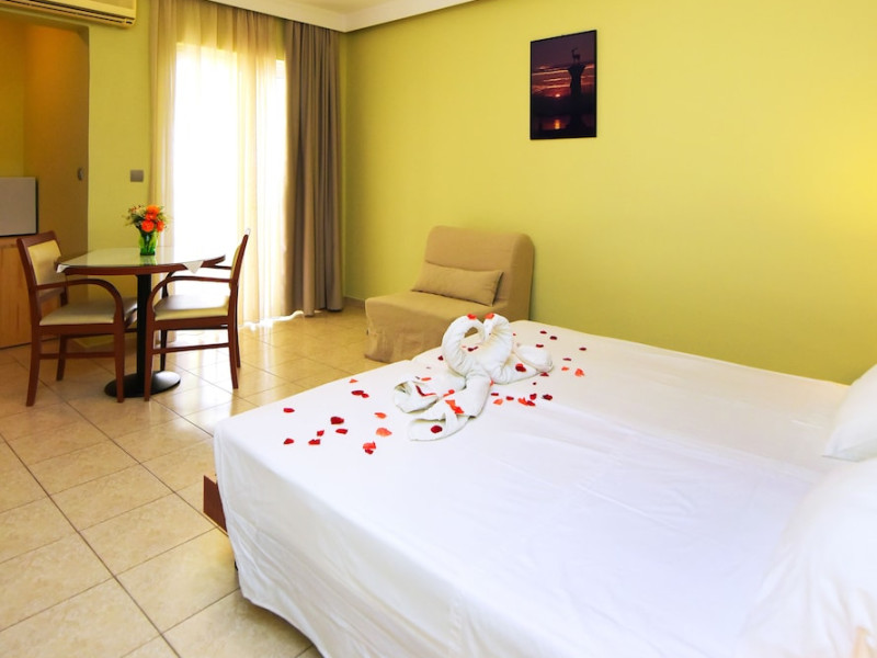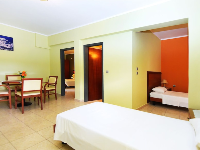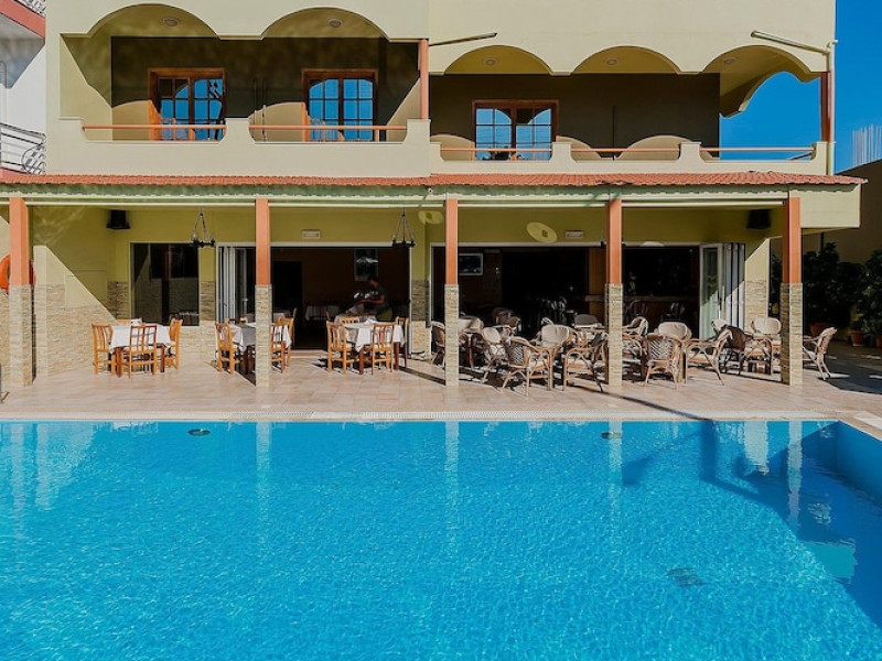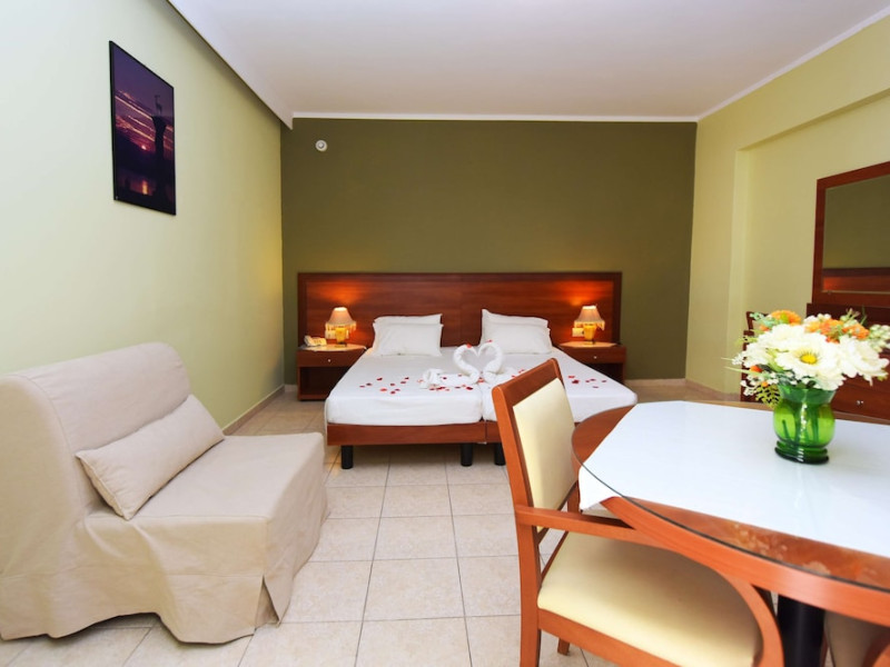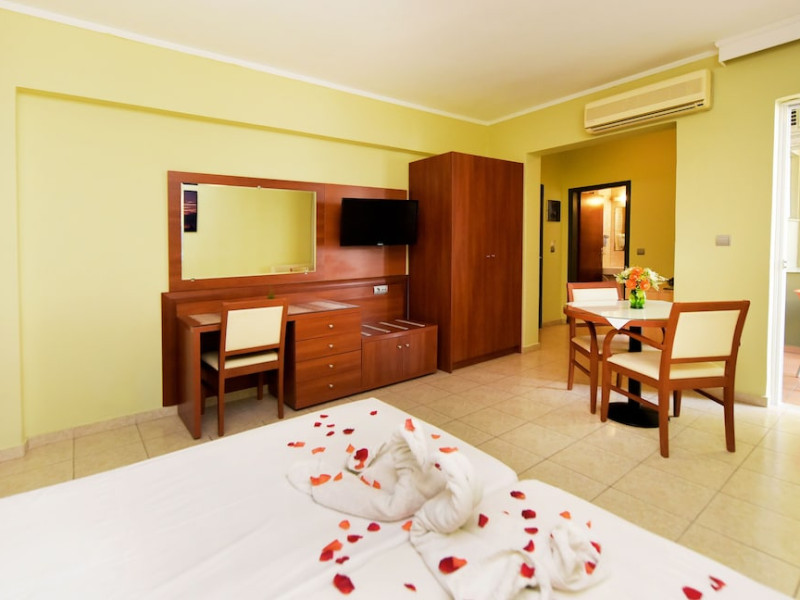 Facilities and services include a 16-hour reception (08:00-24:00), luggage room, lobby, TV lounge, Wi-Fi in public areas (free), library corner, outdoor swimming pool, sunbeds & umbrellas (free at the pool, with extra charge at the public beach), bar, restaurant, pool, towels (deposit), sun terrace, garden, onsite parking (free), shuttle bus service (on request with extra charge), doctor on call (extra charge, and first aid.Rooms feature air-conditioning/heating (free), Wi-Fi (free), direct-dial telephone, safety deposit box (free), LCD TV (with satellite & music channels), mini fridge, electric kettle, coffee & tea facilities, writing desk,blackout curtains, iron & ironing board (on request), bathtub/WC or shower/WC, hairdryer, bathroom amenities, balcony/terrace, wake-up service, room service (10:00-22:00, extra charge), maid service (6 times per week), towel change (3 times per week), and linen change (3 times per week).**Accommodation of 3rd person on the sofa bed or folding bed****Limited hours reception, please contact the hotel and advise your arrival time****The operation of certain services & facilities is subject to COVID-19 protocols & weather condition**Address: 30 Eleftherias Avenue, Kremasti, Greece.