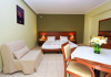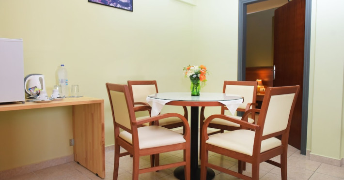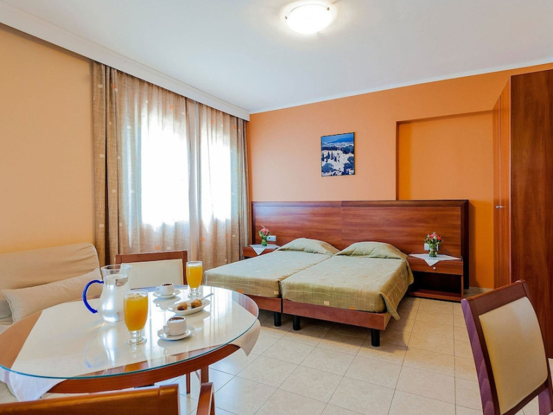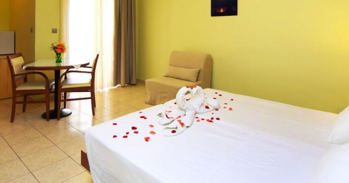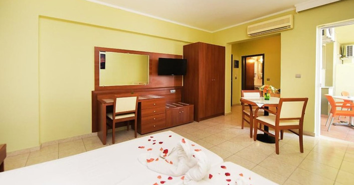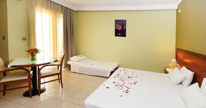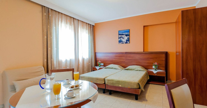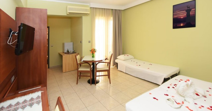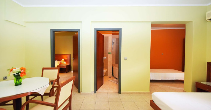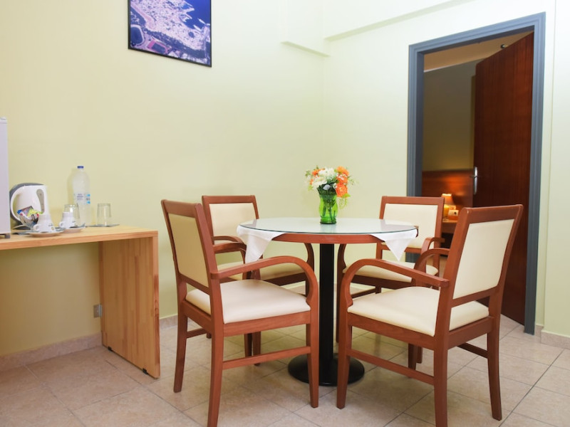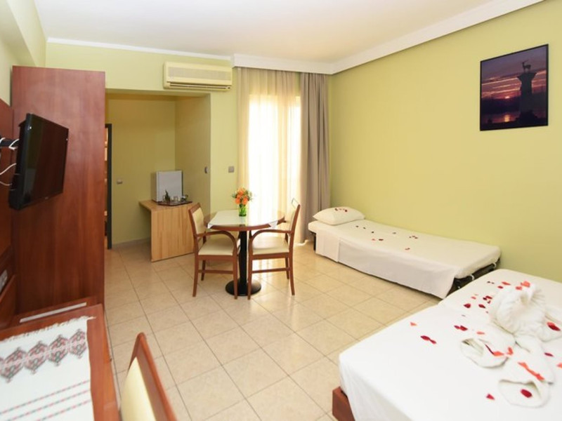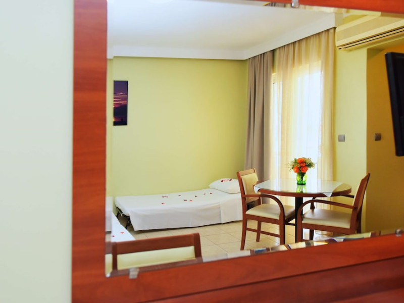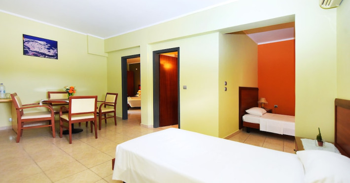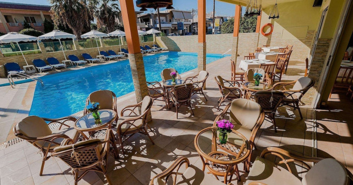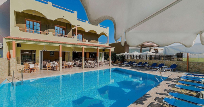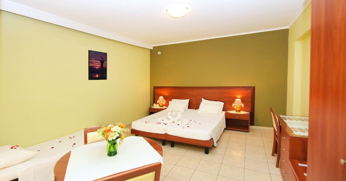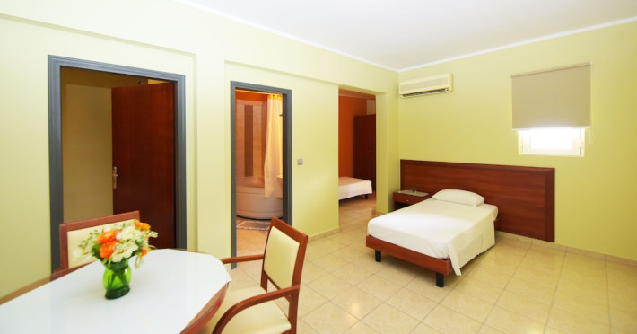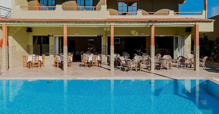 Facilities and services include a 16-hour reception (08:00-24:00), luggage room, lobby, TV lounge, Wi-Fi in public areas (free), library corner, outdoor swimming pool, sunbeds & umbrellas (free at the pool, with extra charge at the public beach), bar, restaurant, pool, towels (deposit), sun terrace, garden, onsite parking (free), shuttle bus service (on request with extra charge), doctor on call (extra charge, and first aid.Rooms feature air-conditioning/heating (free), Wi-Fi (free), direct-dial telephone, safety deposit box (free), LCD TV (with satellite & music channels), mini fridge, electric kettle, coffee & tea facilities, writing desk,blackout curtains, iron & ironing board (on request), bathtub/WC or shower/WC, hairdryer, bathroom amenities, balcony/terrace, wake-up service, room service (10:00-22:00, extra charge), maid service (6 times per week), towel change (3 times per week), and linen change (3 times per week).**Accommodation of 3rd person on the sofa bed or folding bed****Limited hours reception, please contact the hotel and advise your arrival time****The operation of certain services & facilities is subject to COVID-19 protocols & weather condition**Address: 30 Eleftherias Avenue, Kremasti, Greece.