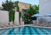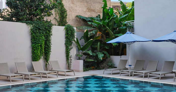 Outdoor facilities at the hotel include a covered terrace with parasols and an outdoor swimming pool, which offers a refreshing retreat for guests to relax and soak up the sun daily from 7:30 to 19:00. Sun loungers are available, subject to availability, and changing rooms are provided for guests' convenience.