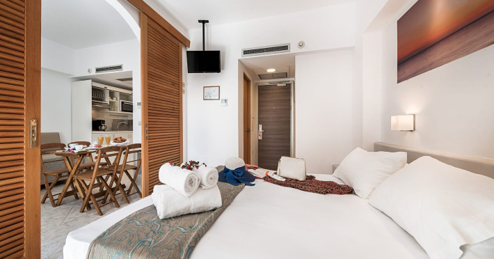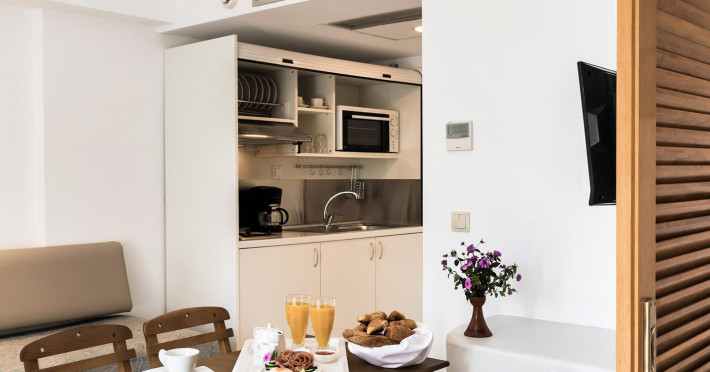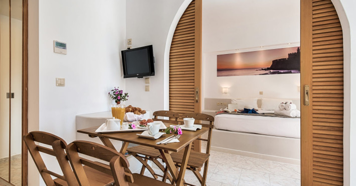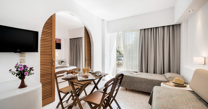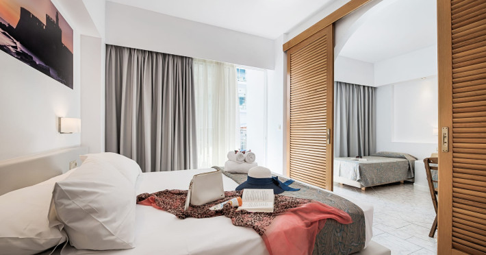 The rooms at Esperia City Hotel are well-appointed and offer a comfortable stay. The apartments feature separate bedrooms, a living room, a balcony, a dining area, and a bathroom. They can accommodate a maximum of four guests, making them ideal for families or groups. The double rooms and single rooms are equipped with all the necessary amenities, including air conditioning, free Wi-Fi, satellite TV, a safe, and a mini fridge. Each room has a balcony and a private bathroom with a shower.