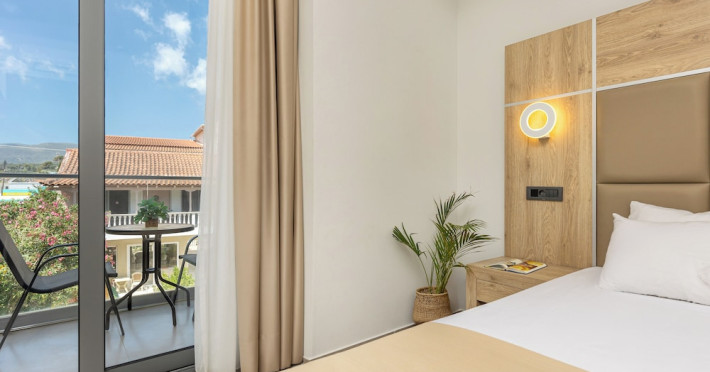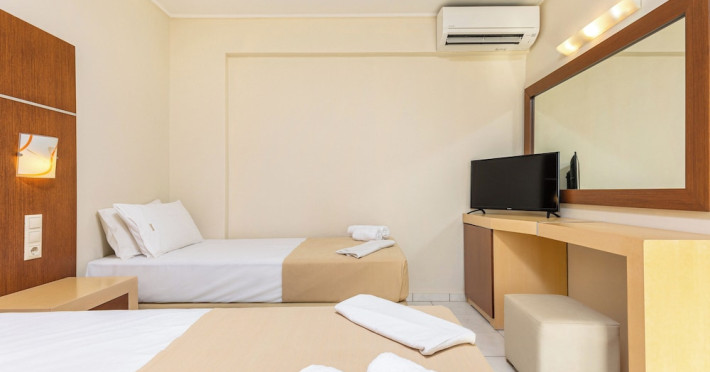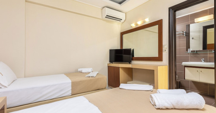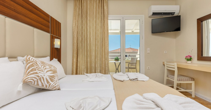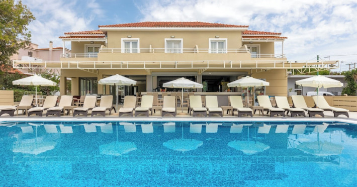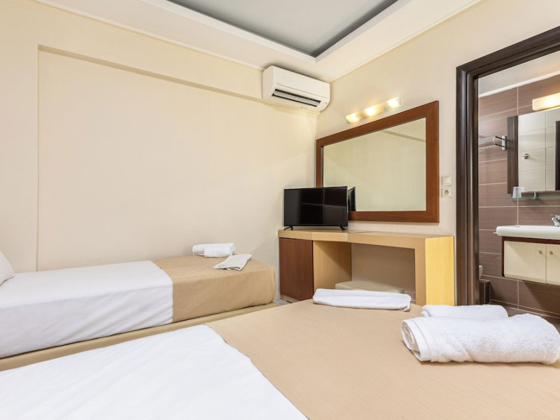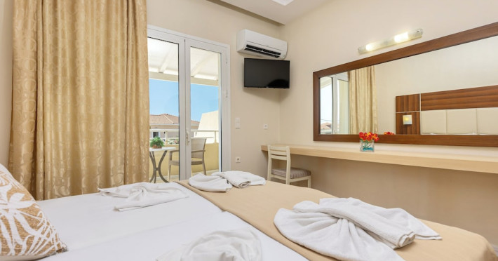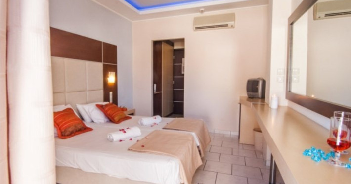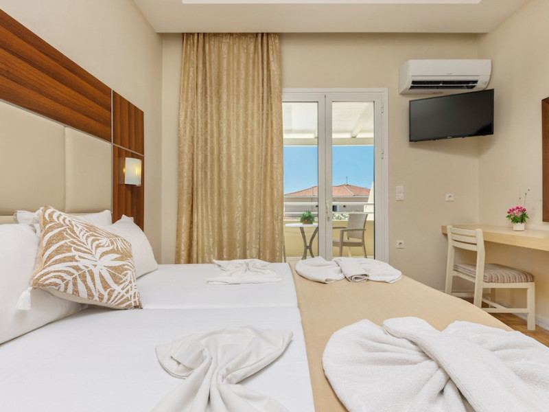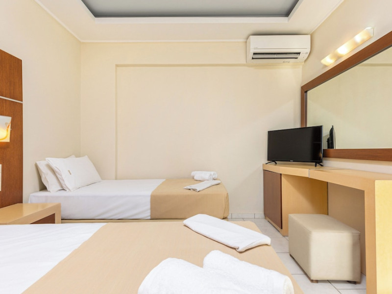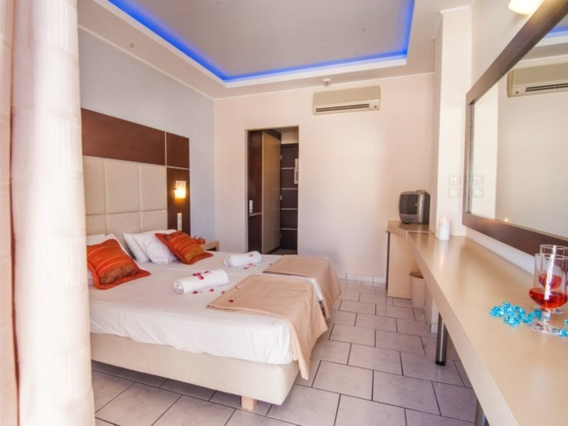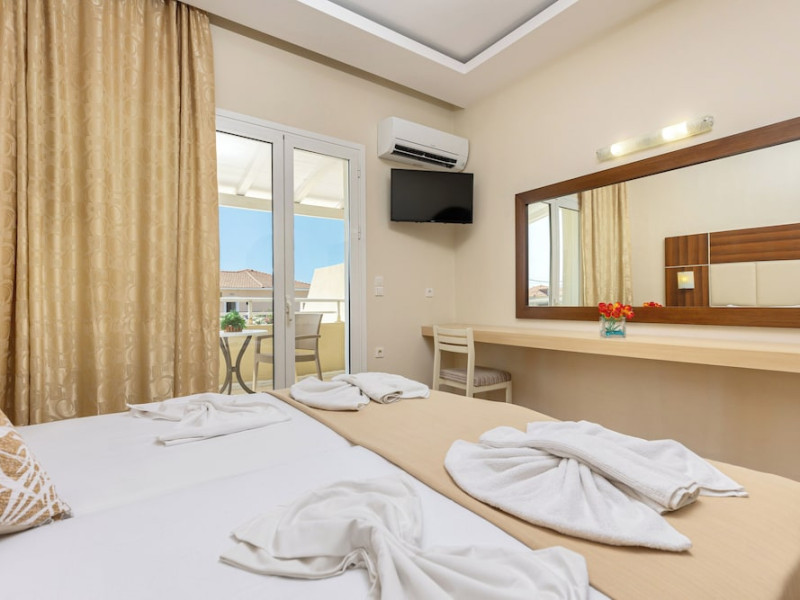 Hotel facilities include snack-bar, parking area, reception (24 hr) and internet access. All rooms are equipped with private bathroom, direct dial phone, color TV, air-conditioning and balcony. Address: Laganas, 29092 Zakynthos, Greece