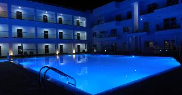 In Ayia Napa (Ayia Napa City Center). With a stay at Evabelle Napa Hotel Apartments, youll be centrally located in Ayia Napa, a 4-minute drive from Nissi Beach and 14 minutes from Fig Tree Bay. This aparthotel is 2.5 mi (4 km) from Makronissos Beach and 0.2 mi (0.3 km) from Katsarka Beach. Make yourself at home in one of the 91 air-conditioned rooms featuring kitchenettes. Rooms have private furnished balconies. 26-inch LED televisions with satellite programming provide entertainment, while complimentary wireless internet access keeps you connected. Conveniences include phones, as well as laptop-compatible safes and refrigerators. You can enjoy a meal at the restaurant serving the guests of Evabelle Napa Hotel Apartments, or stop in at the snack bar/deli. Relax with your favorite drink at the bar/lounge or the poolside bar. Buffet breakfasts are available daily from 7:30 AM to 10:00 AM for a fee. Take advantage of recreational opportunities offered, including an outdoor pool, an outdoor tennis court, and a sauna. Additional amenities at this aparthotel include complimentary wireless internet access, an arcade/game room, and a television in a common area.
