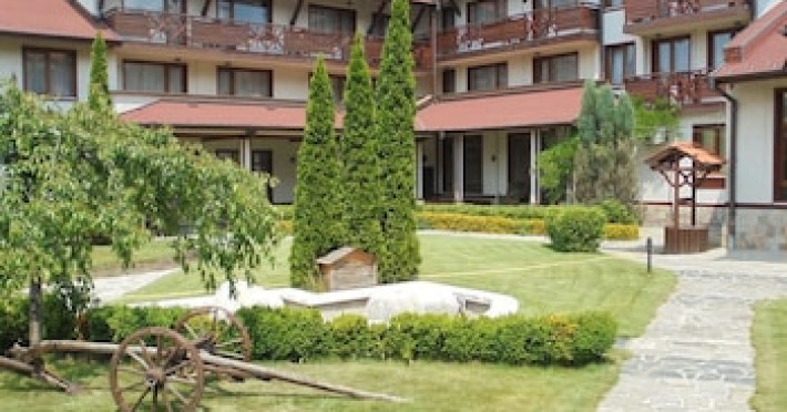 Nestled in a charming Bansko location on the Glazne River's west bank, this stylish hotel is conveniently situated on the main road to the cabin lift, just 100 meters from the city center. Built in the region's traditional Bulgarian architectural style, the hotel offers a relaxing and elegant atmosphere. Its 47 rooms and apartments provide comfortable accommodations, complemented by a classic restaurant serving exquisite Bulgarian and European cuisine. Guests can also enjoy a range of facilities, including a spa with one of the area's largest indoor pools, a fitness center, sauna, various massage therapies, table tennis, and a delightful summer garden with a barbecue and children's playground. Each room and apartment features satellite TV, a direct-dial phone, minibar, hairdryer, central heating, and a balcony. The restaurant offers a varied menu featuring Mediterranean specialties, Bulgarian dishes, and local Bansko cuisine. A sports bar shows various sports channels and serves a wide selection of cocktails, alongside a small table tennis area. The lobby bar provides Wi-Fi and serves coffee, cocktails, and other beverages.