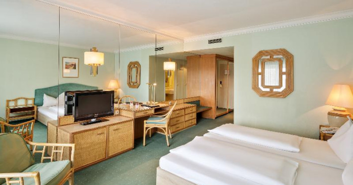 The hotel has 32 junior suites, 272 suites, 1 single room and 154 double rooms, which are located on 6 storeys and are reachable by lift. English- and German-speaking staff at the reception desk in the lobby are ready to assist you with check-in and check-out. Amenities include a baggage storage service, a safe and a drinks machine. Wireless internet access allows guests to stay connected while on holiday. The tour desk offers assistance with booking excursions. The hotel has a range of facilities for guests with disabilities. Wheelchair-accessible facilities are available. A number of shops, including a souvenir shop, are great for shopping or just browsing. A garden provides extra space for rest and relaxation in the open air. Additional facilities include a library. Guests arriving by car can park their vehicles in the garage or in the car park (for a fee). Further services and facilities include a car hire service, room service, a laundry service and a hotel shuttle bus. A business centre with fax machine and projector is available.