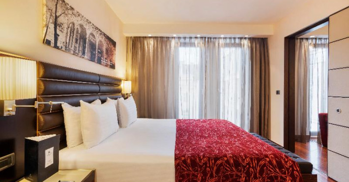 The hotel has 6 junior suites, 3 suites and 166 double rooms, which are located on 9 storeys and are reachable by lift. English-speaking staff at the reception are happy to assist guests at the reception desk round the clock. Check-in and check-out are available 24 hours a day. Services such as a cloakroom, a baggage storage service and a safe ensure a comfortable stay. Wireless internet access allows guests to stay connected while on holiday. The tour desk offers assistance with booking excursions. The hotel offers various facilities for guests with disabilities. Wheelchair-accessible facilities are available. There are also a number of shops that make for great strolling and browsing. Additional facilities include a TV room. Guests arriving by car can park their vehicles in the garage (for a fee) or in the car park (for a fee). Further services and facilities include a transfer service, room service, a laundry service, a coin-operated laundry and a hotel shuttle bus. Active guests who wish to explore the surrounding area by bike will appreciate the bicycle hire service. Bicycle storage is also available. The business centre is on hand for guests business requirements and provides a fax machine.