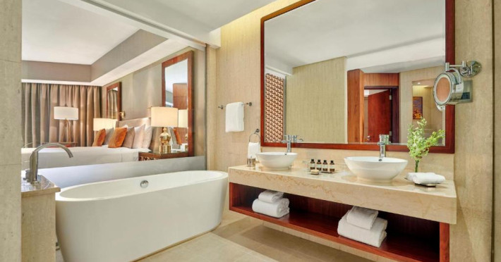 Toate camerele şi suitele au vedere foarte frumoasă de anvergură la mare. Fiecare unitate de cazare este amenajată luxos, cu lenjerie de pat plușată şi facilităţi ultramoderne. Baia somptuoasă are cadă și duș cu efect de ploaie separat.